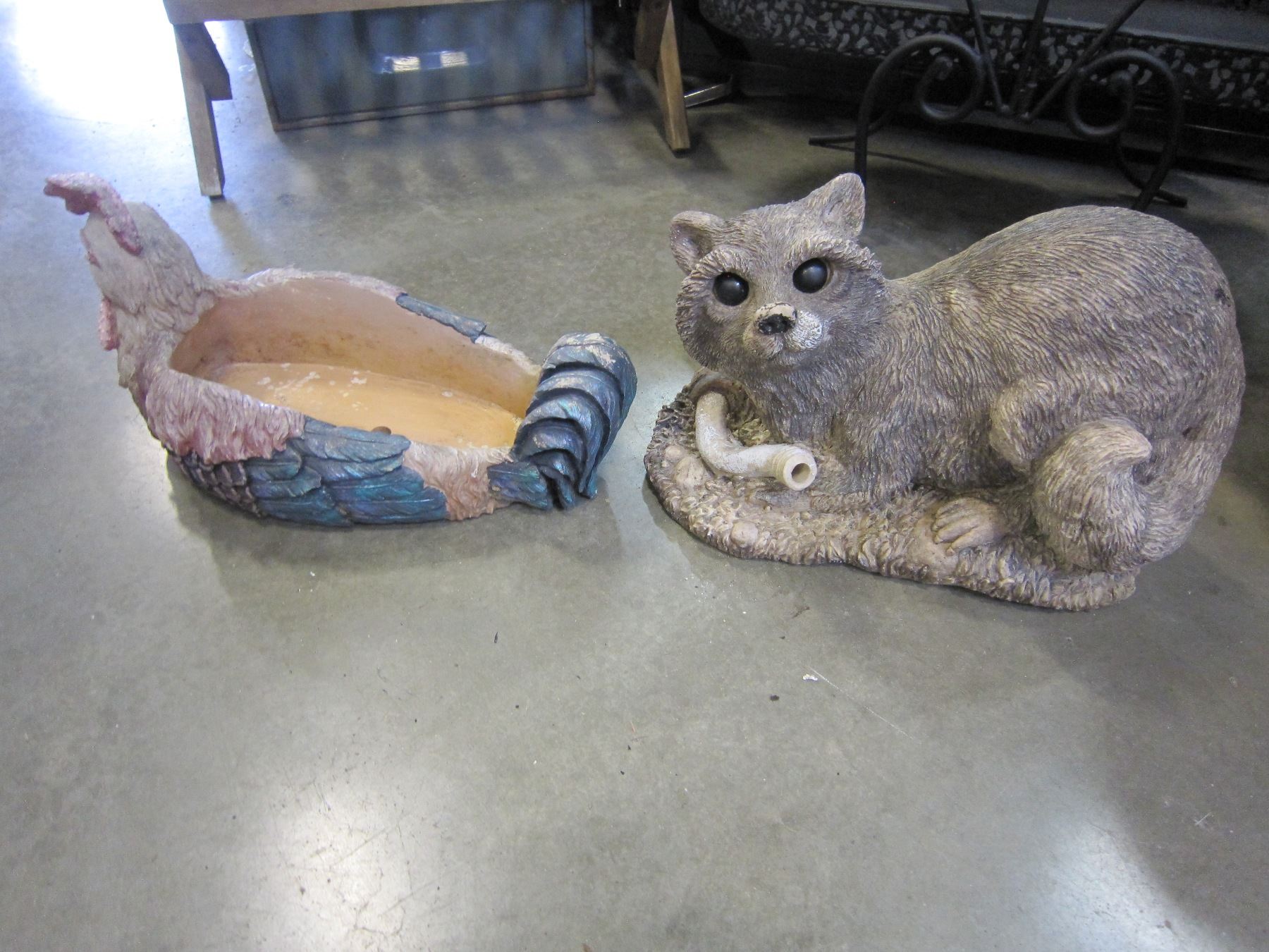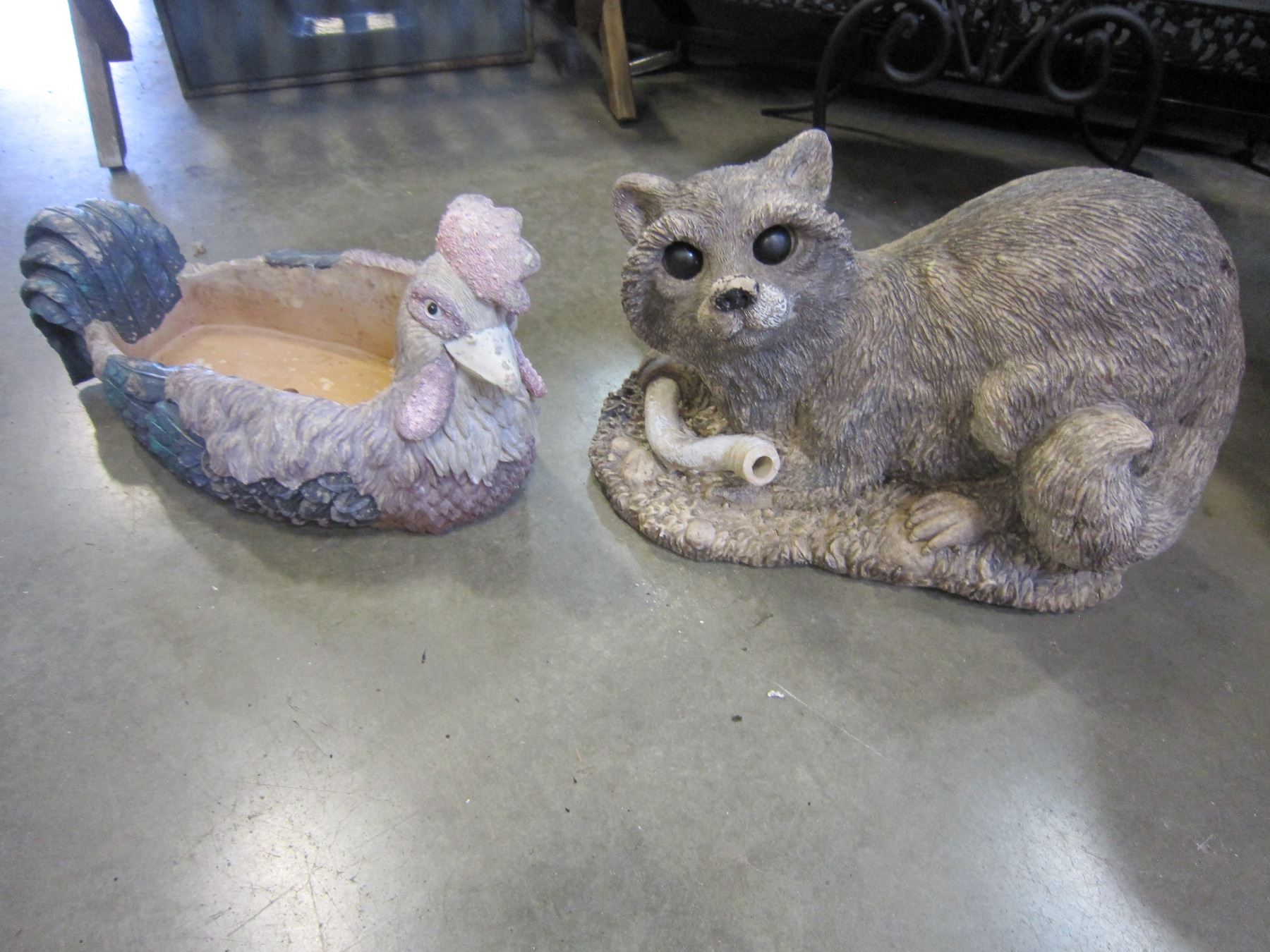 ROOSTER AND RACCOON GARDEN DECOR