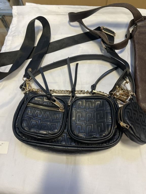 ROOTS LEATHER BAG, VICTORIA SECRET LEATHER TOTE AND BLACK / GOLD LADIES PURSE