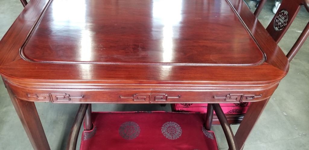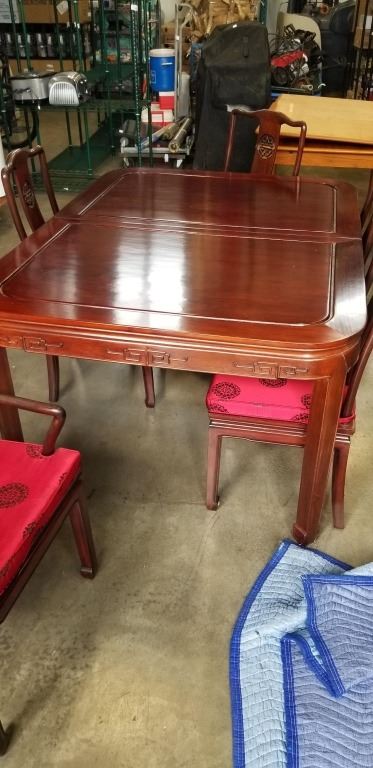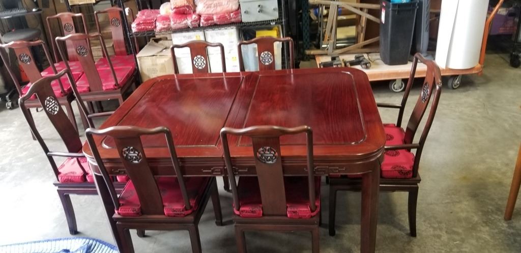 ROSEWOOD DINING TABLE WITH 10 CHAIRS AND 2 LEAF INSERTS