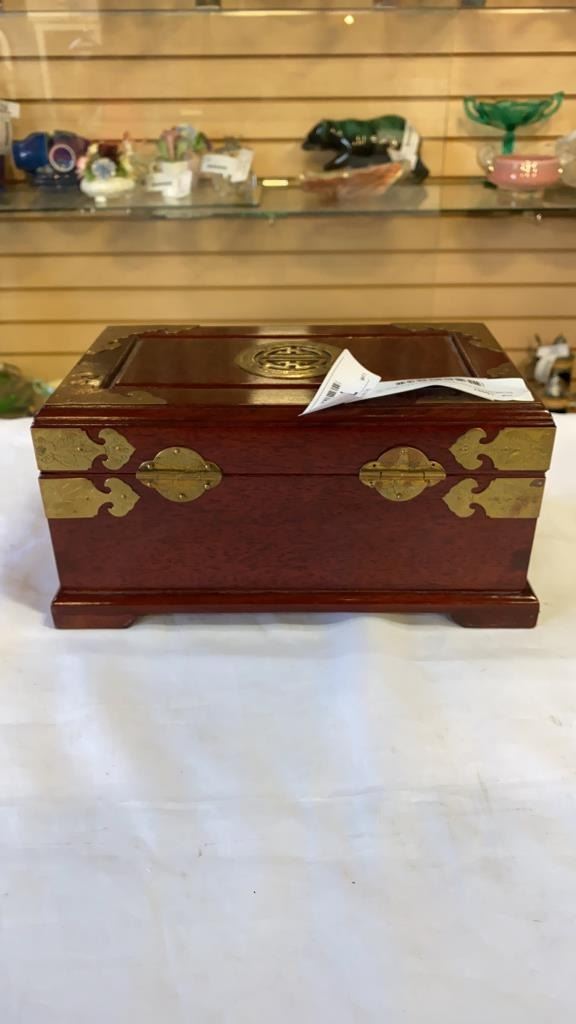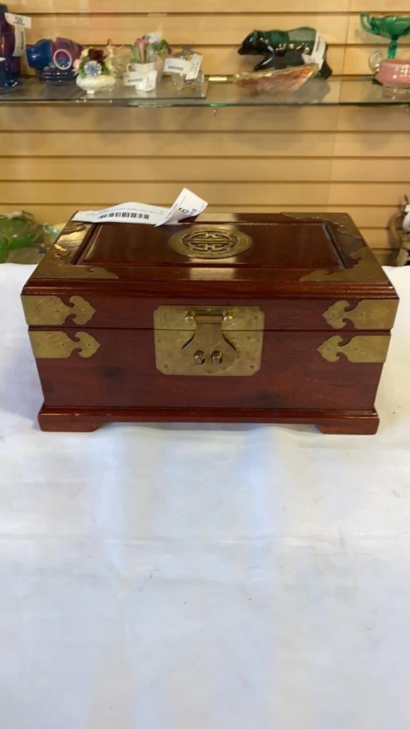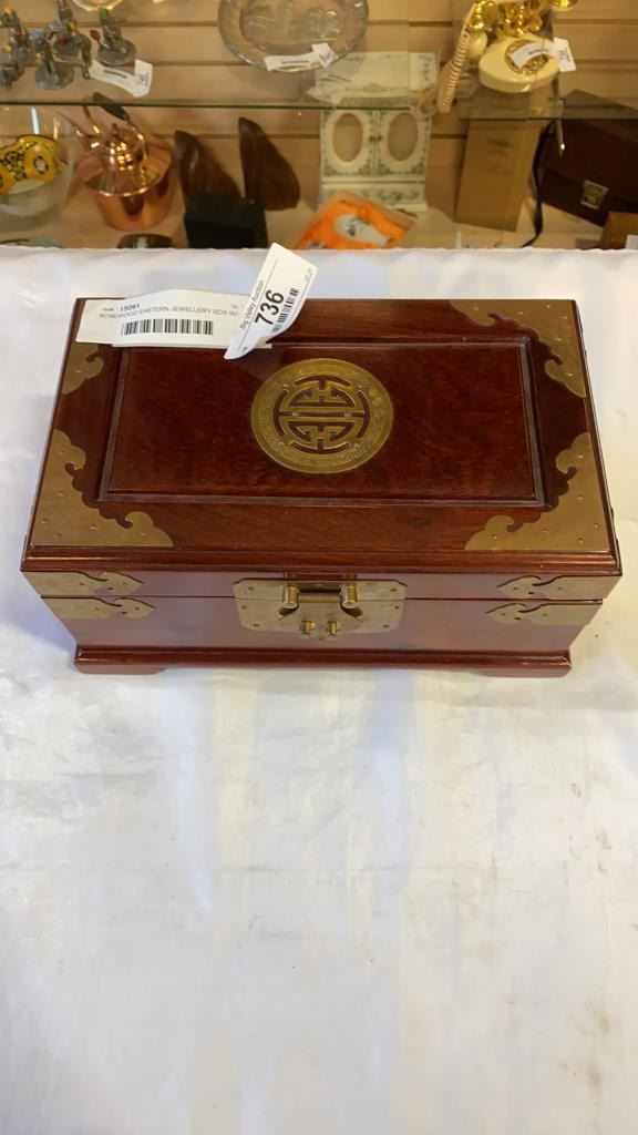 ROSEWOOD EASTERN JEWELLERY BOX W/ BRASS FITTINGS