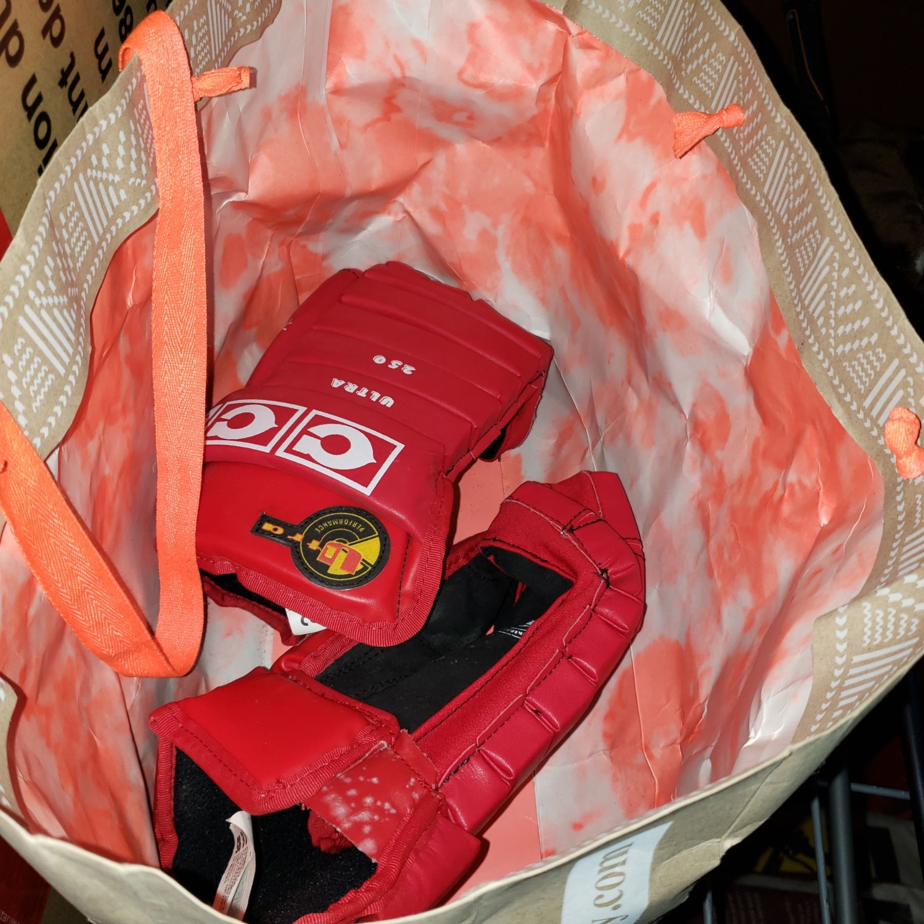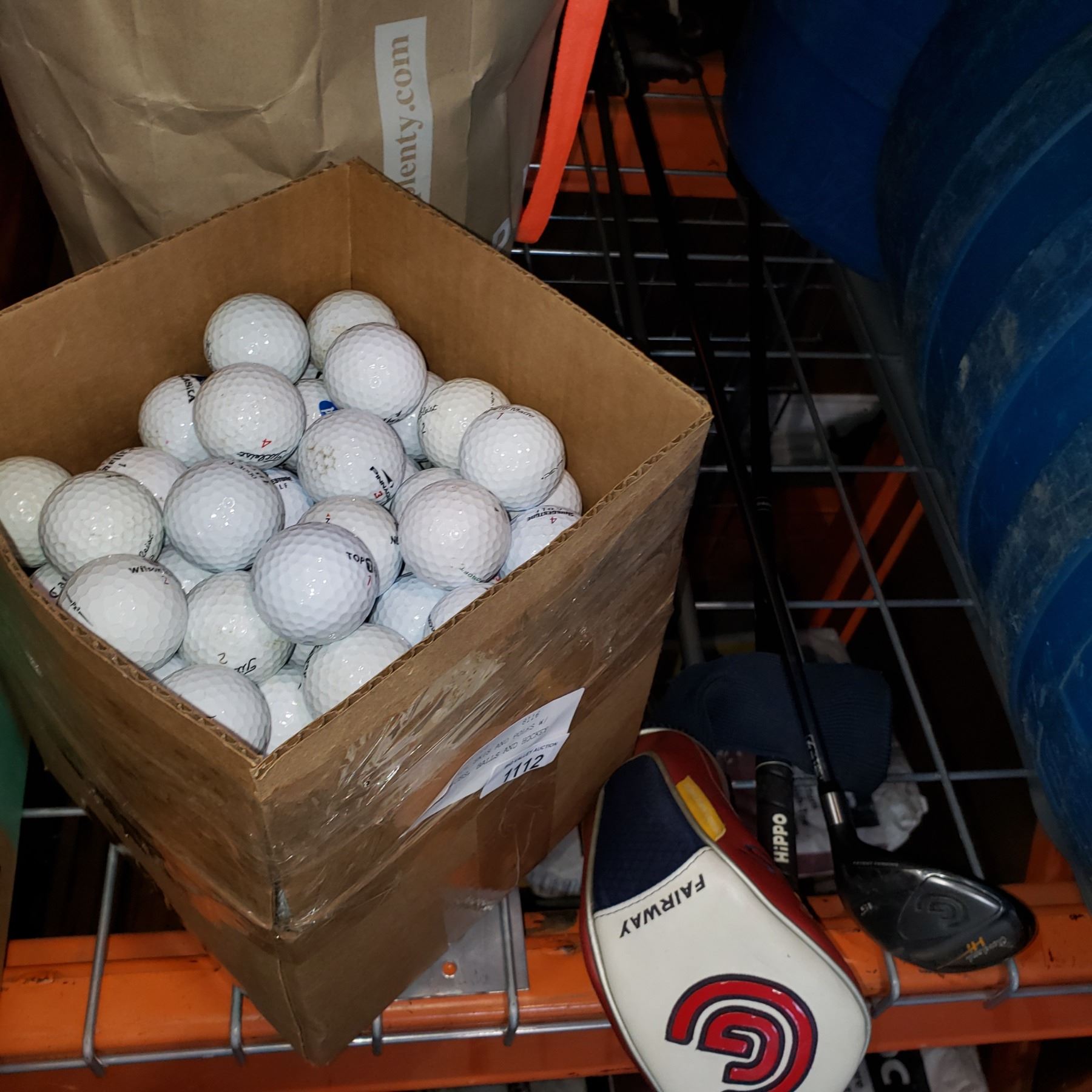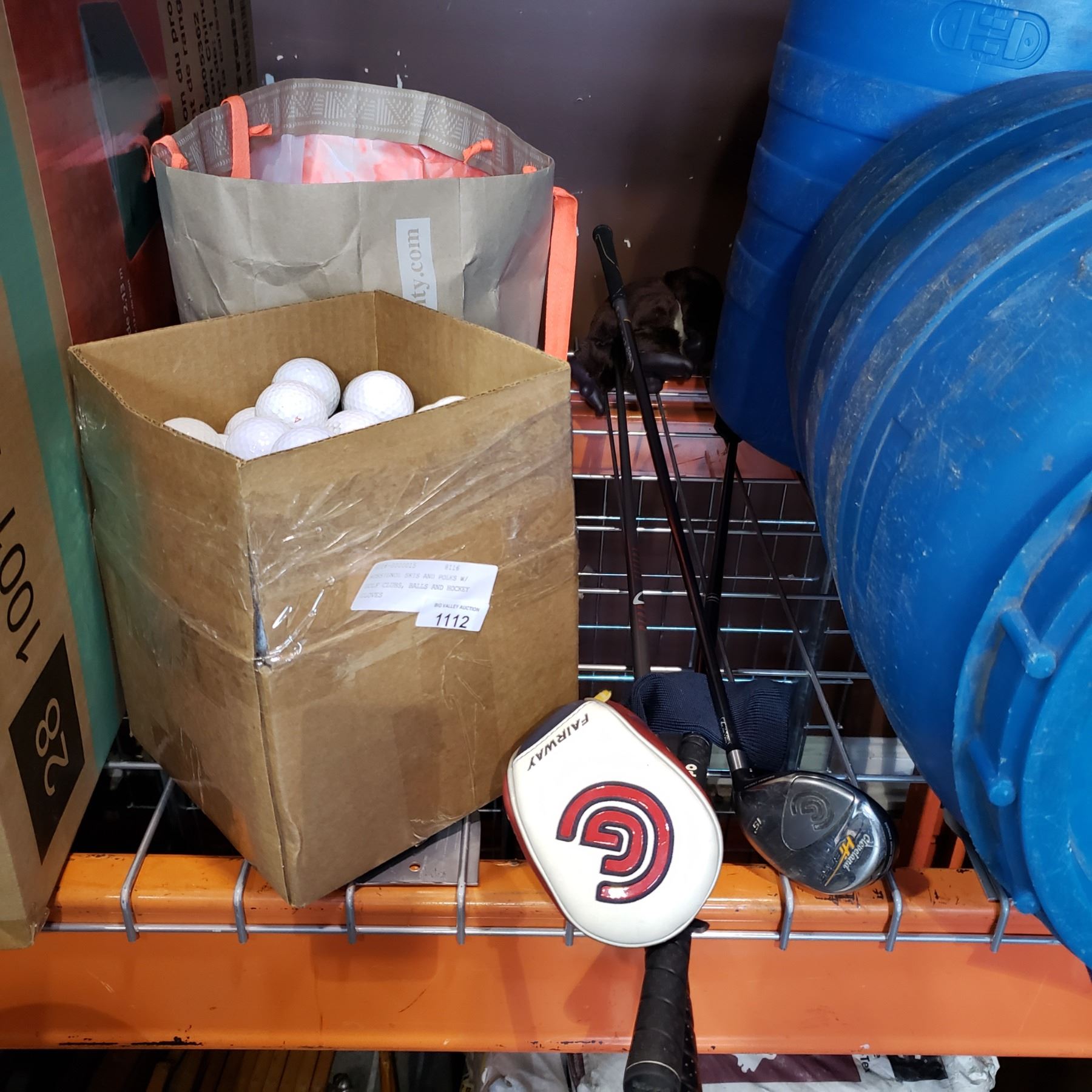 ROSSIGNOL SKIS AND POLES W/ GOLF CLUBS, BALLS AND HOCKEY GLOVES