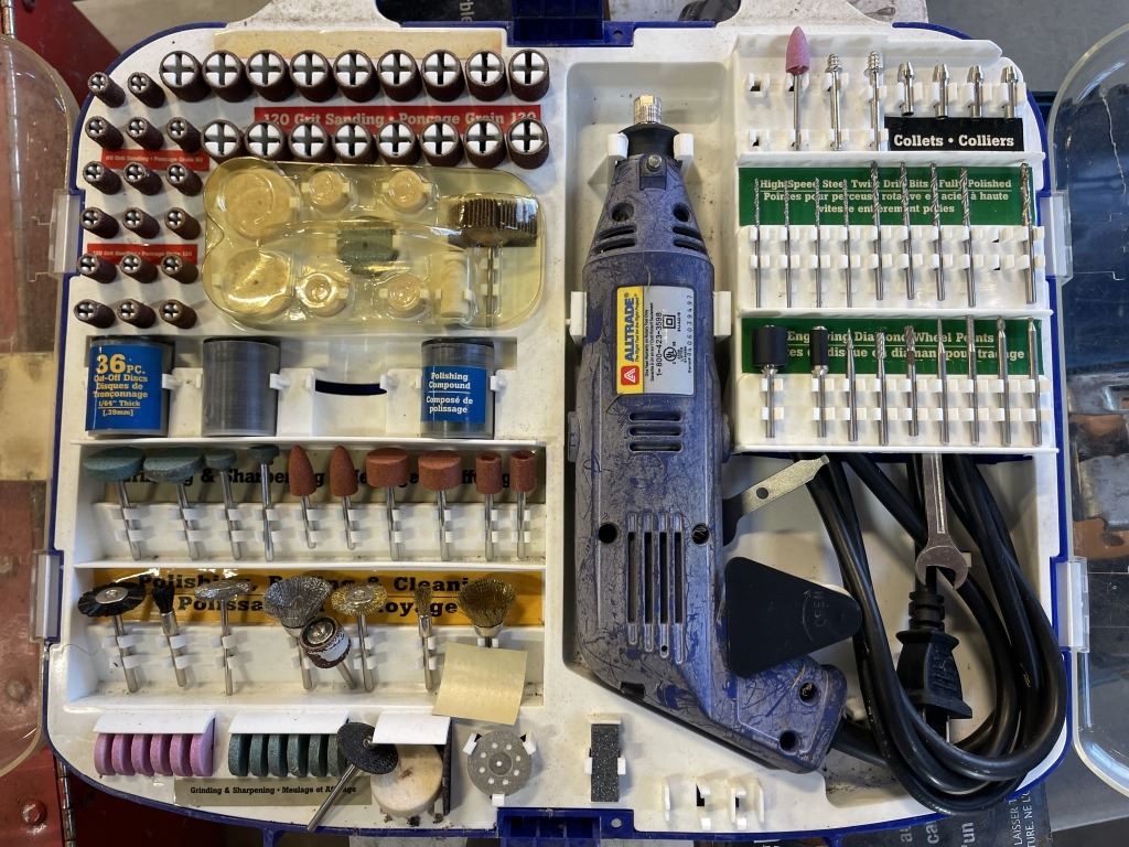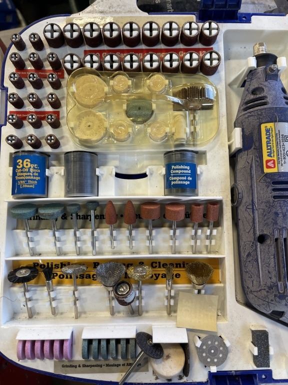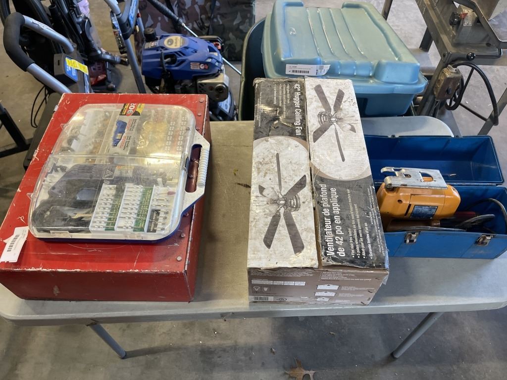 ROTARY TOOL WITH ACCESSORIES, CEILING FAN, METAL CASE AND JIGSAW