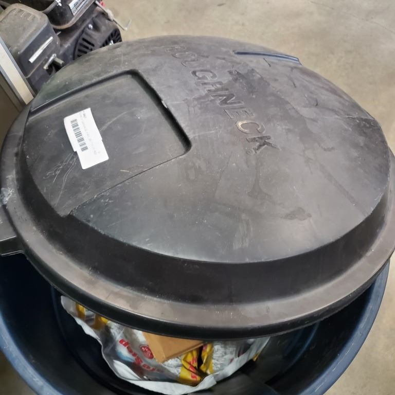 ROUGHNECK GARBAGE PAIL WITH LID AND TWO 10KG PAILS OF ICE SALT