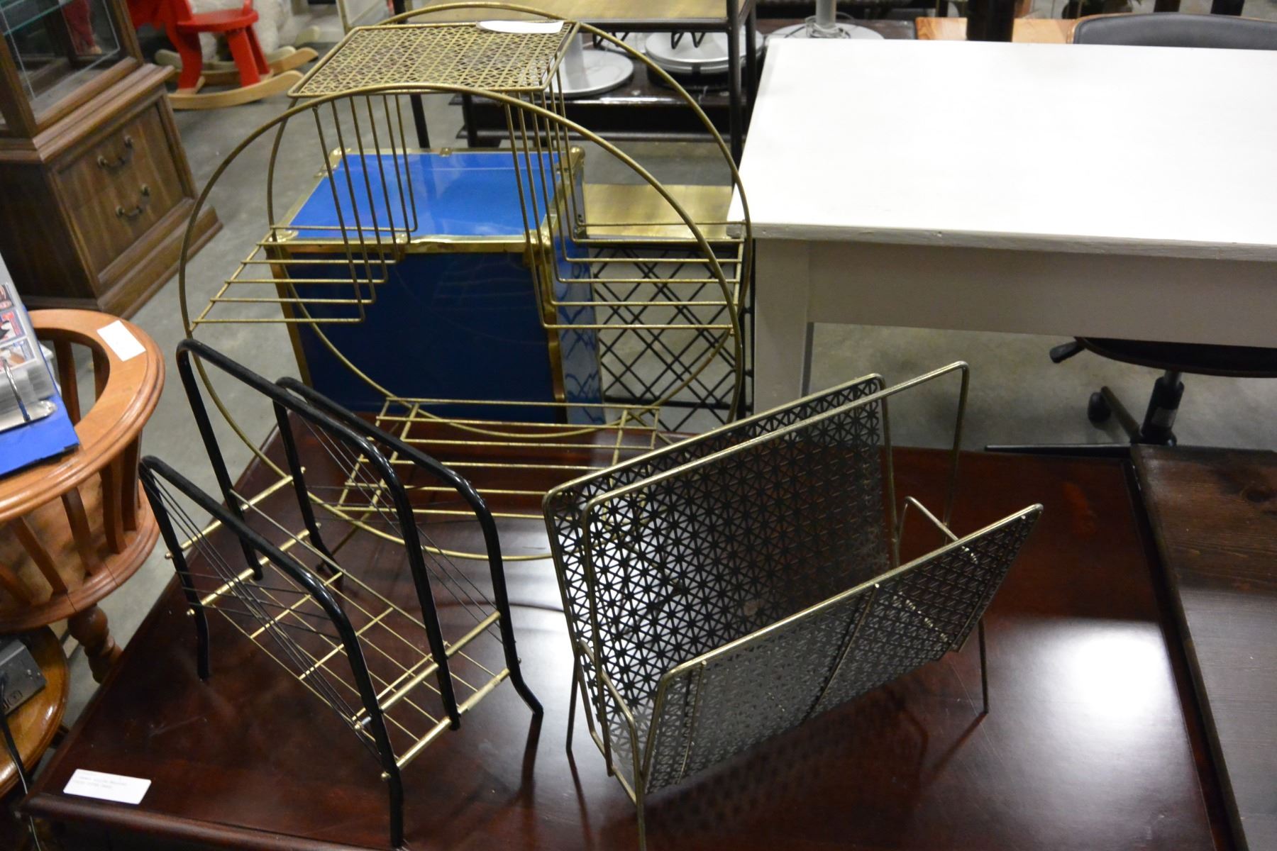 ROUND BRASS SHELF AND MAGAZINE STANDS