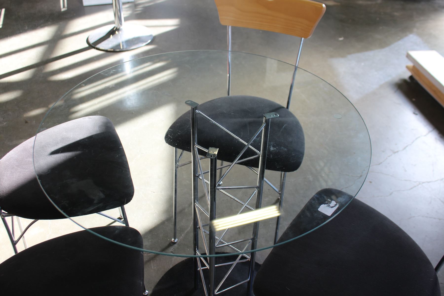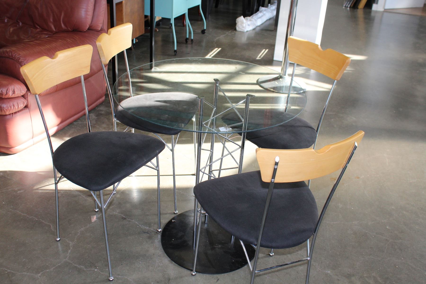 ROUND CHROME AND GLASS TOP DINING TABLE WITH 4 CHAIRS