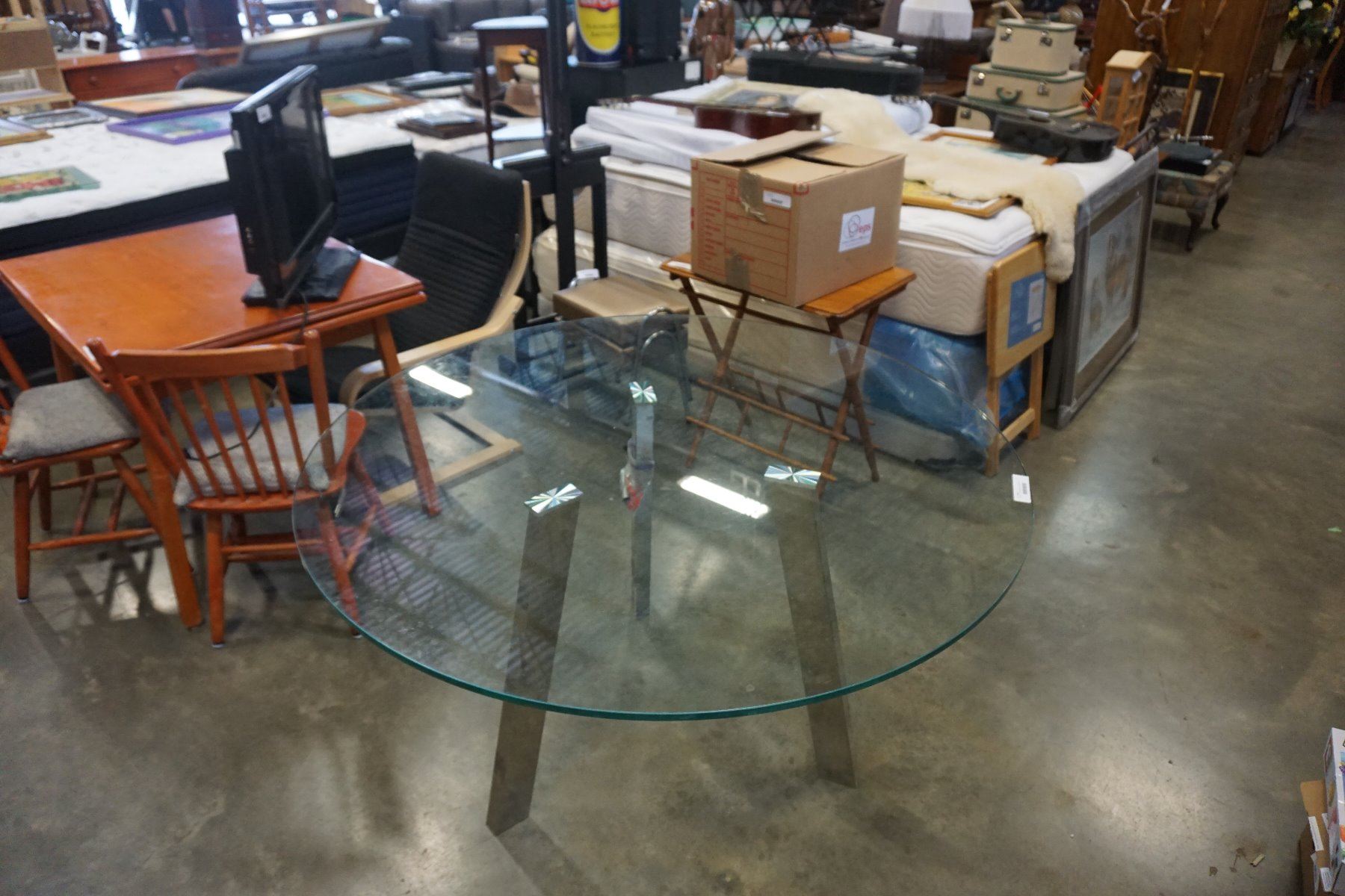 ROUND GLASS DINING TABLE WITH 4 MODERN CHAIRS