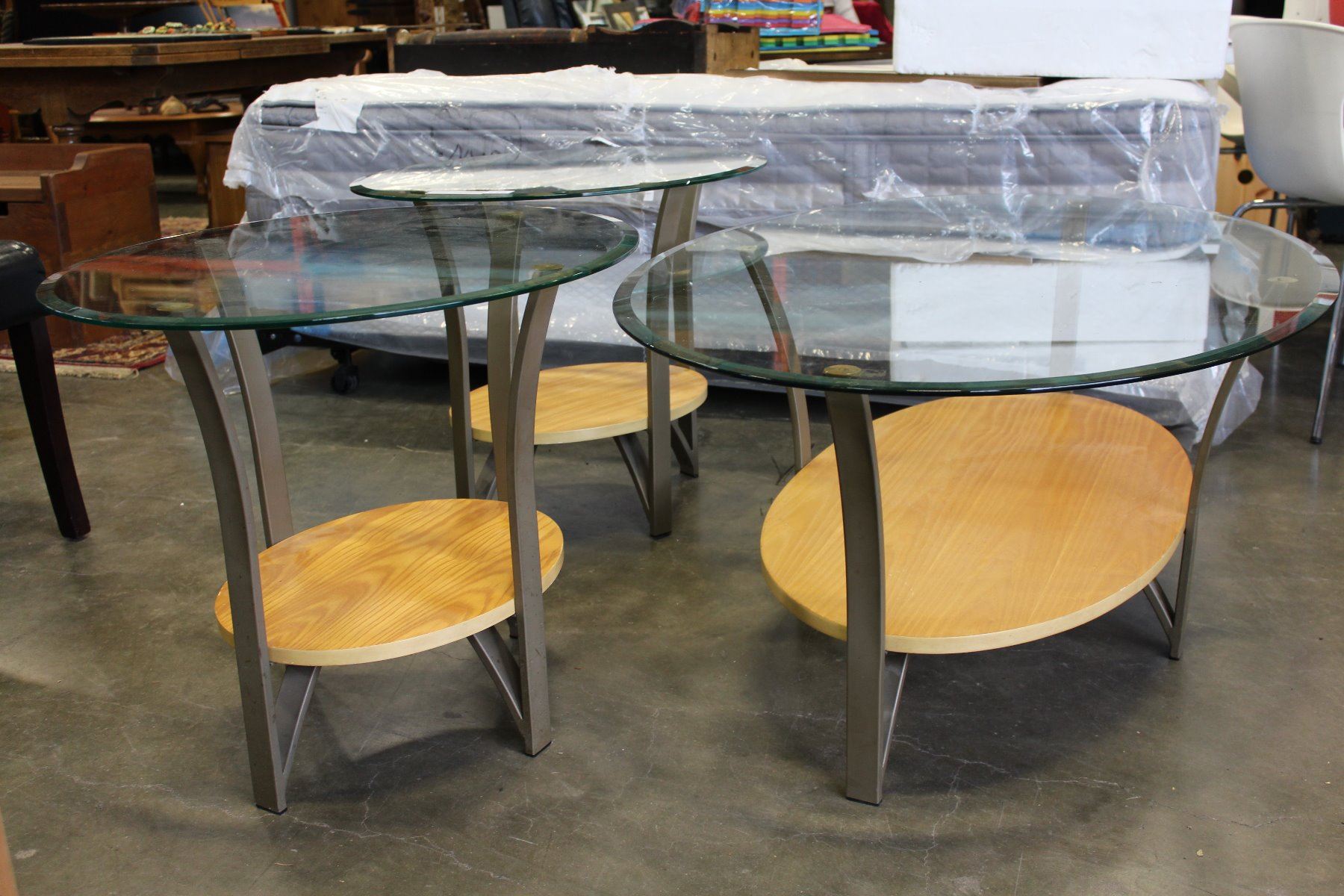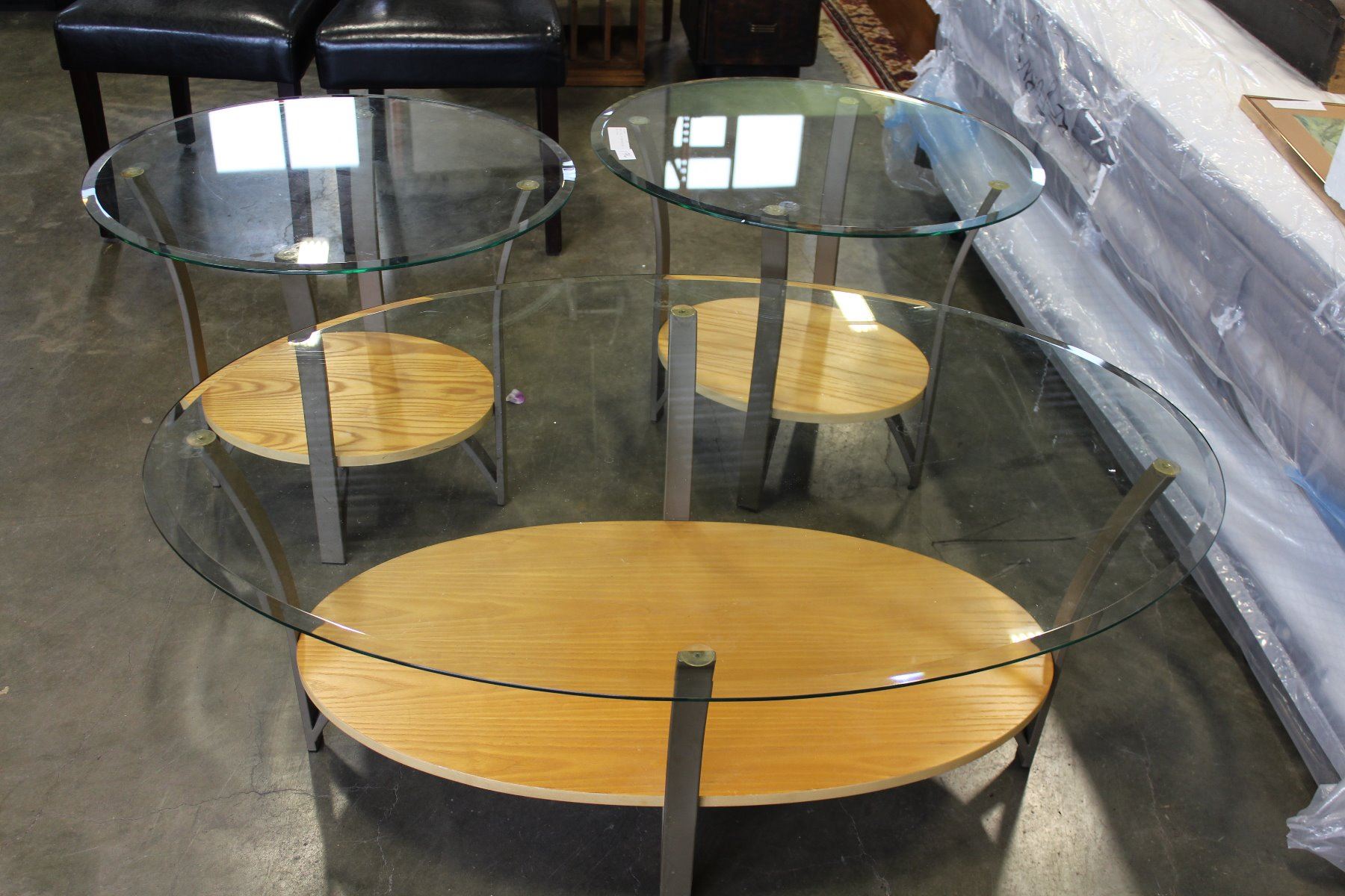 ROUND GLASS TOP ENDTABLES AND OVAL COFFEE