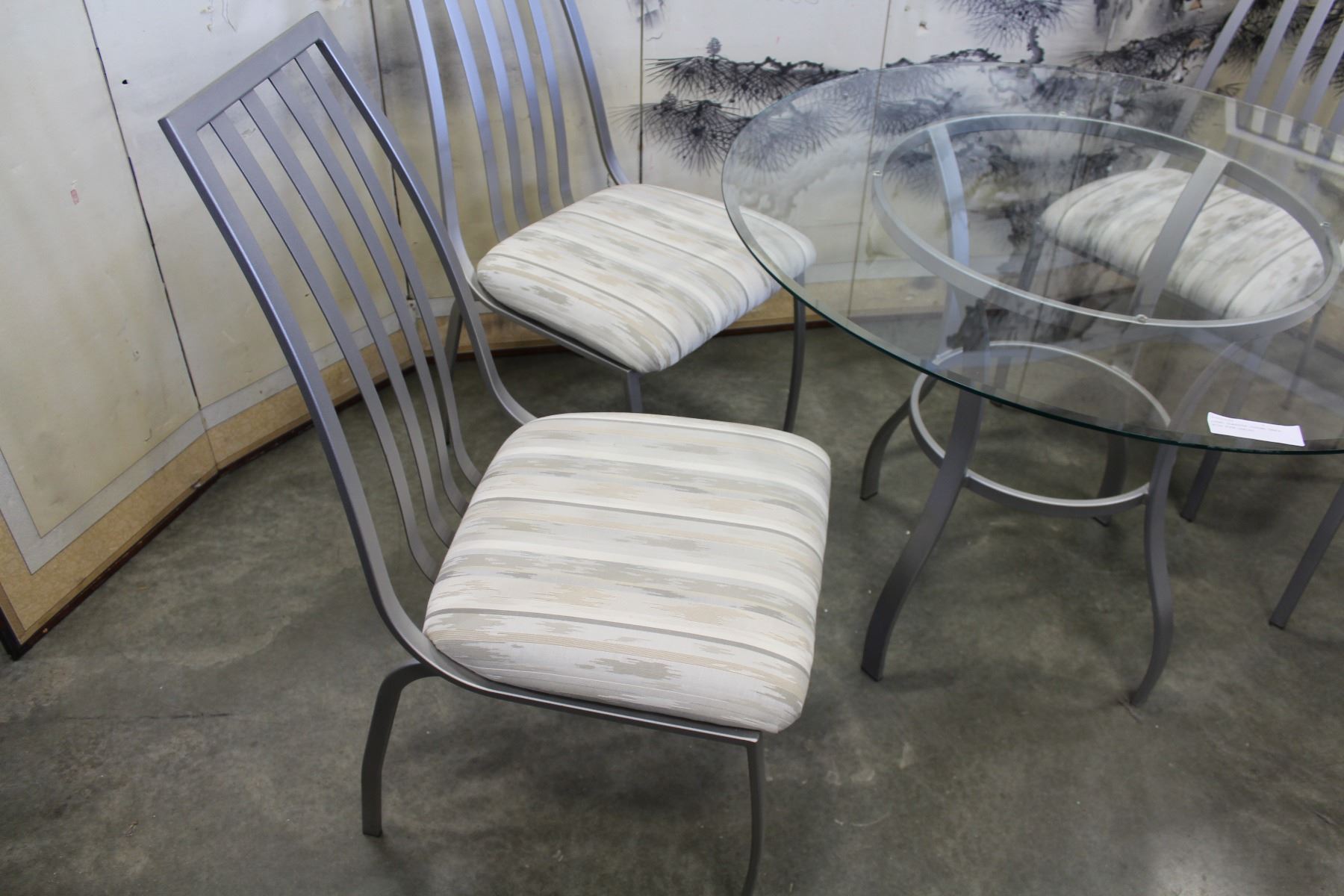 ROUND GLASSTOP DINING TABLE WITH FOUR CHAIRS