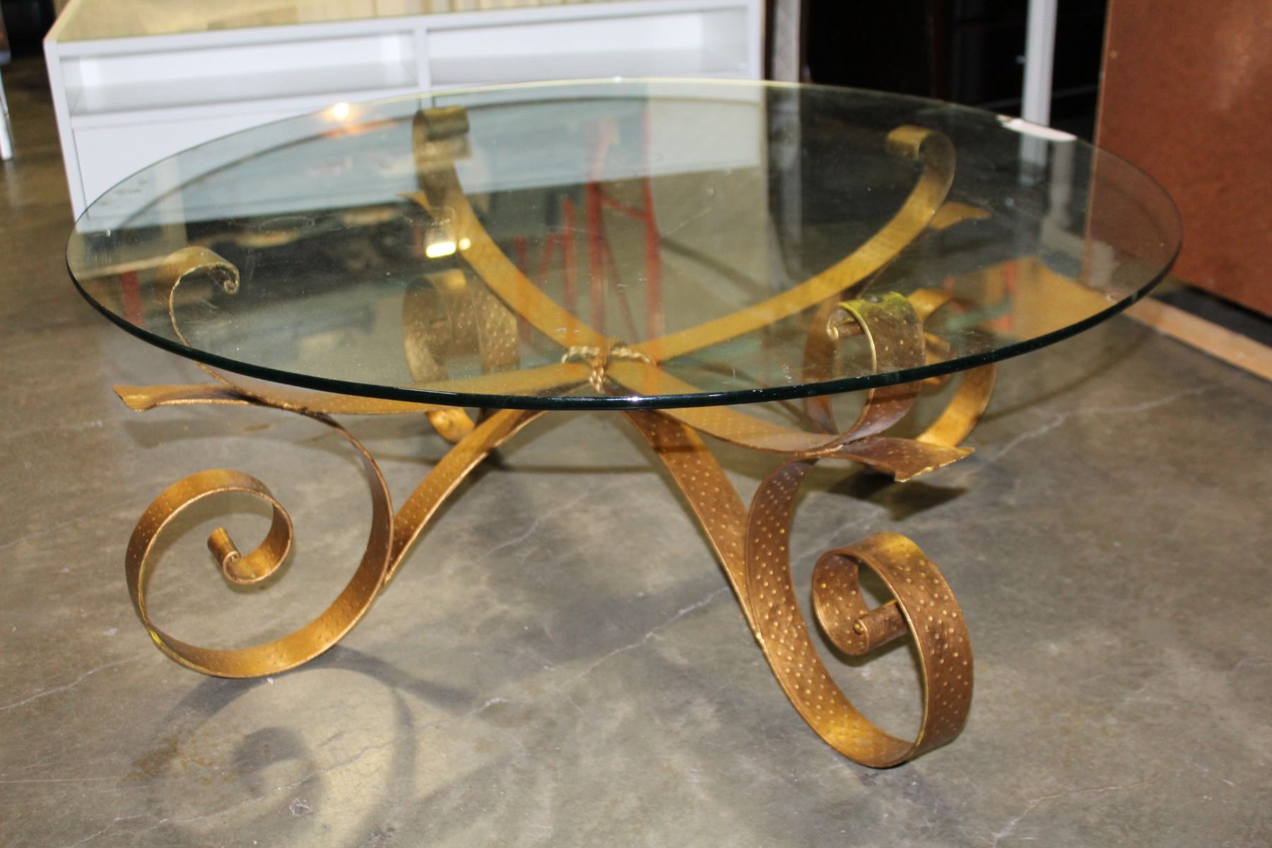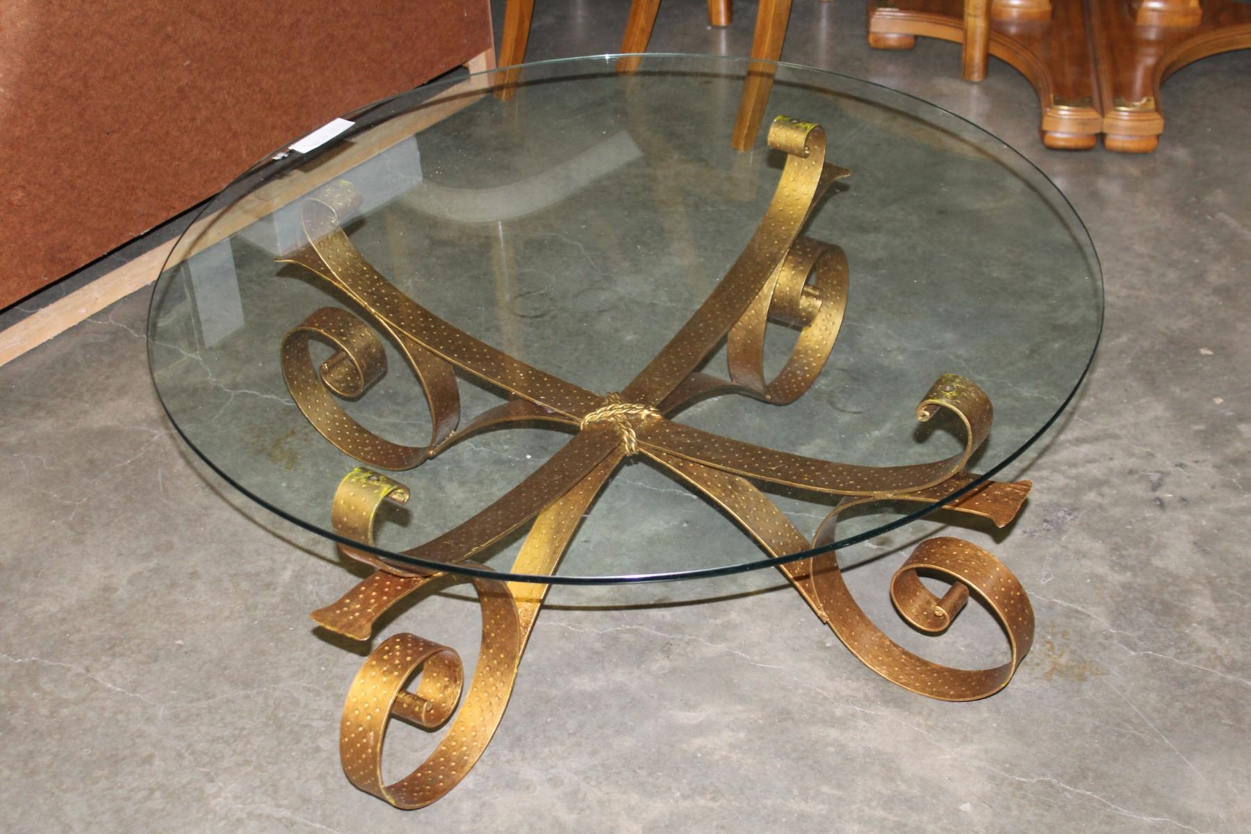 ROUND GLASSTOP METAL BASE COFFEE TABLE