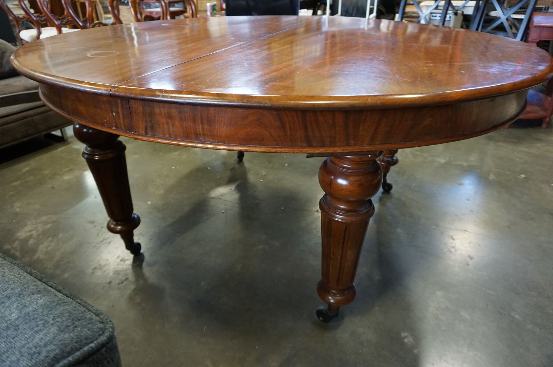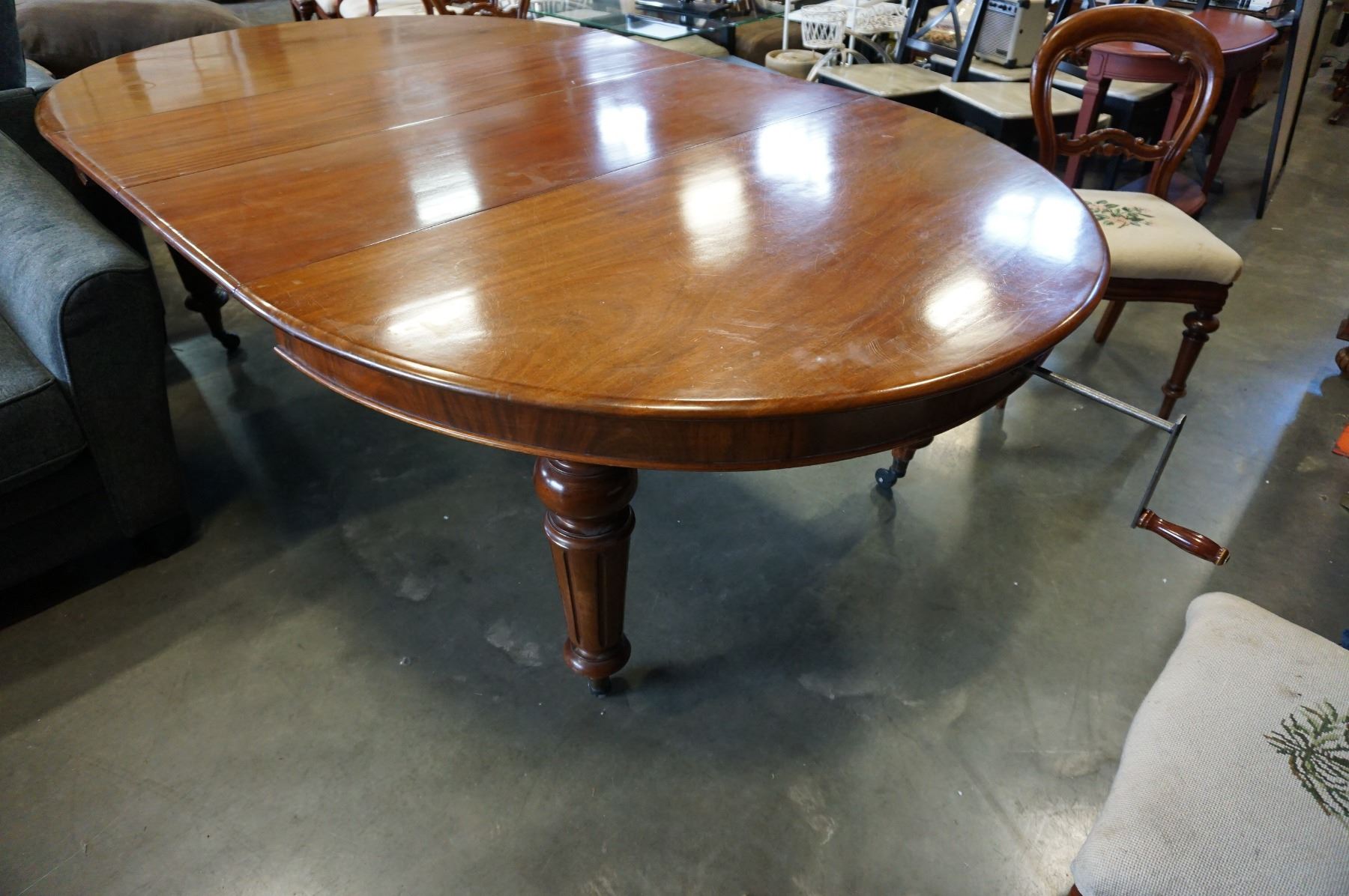 ROUND MAHOGANY DINING TABLE W/ 8 BALOON BACK CHAIRS