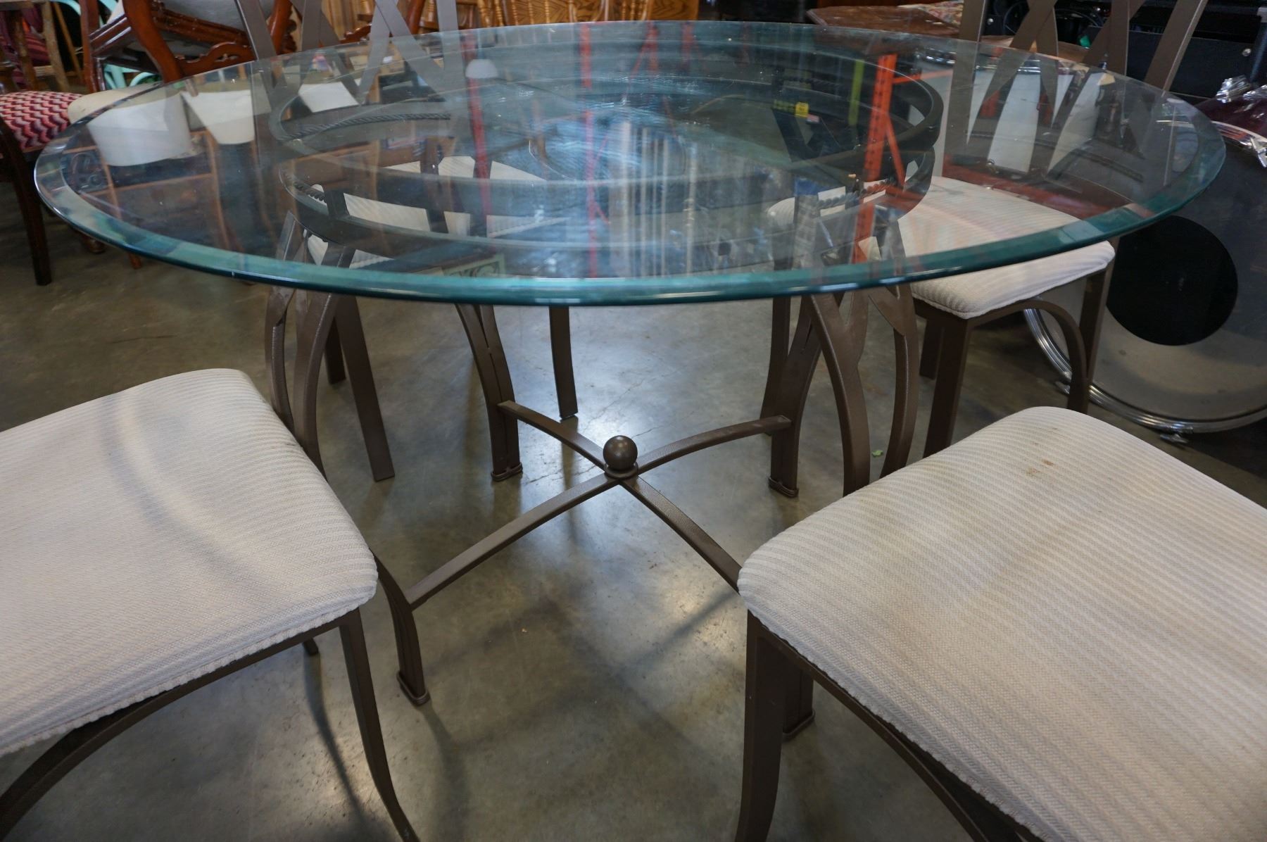 ROUND METAL BASE GLASS TOP TABLE W/ 4 CHAIRS