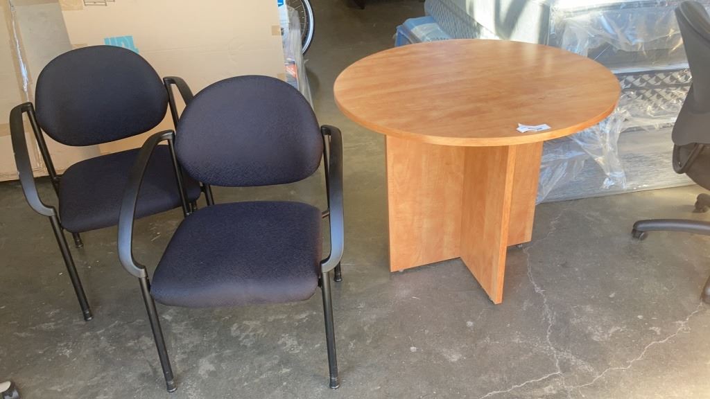 ROUND TABLE WITH 2 STACKING CHAIRS