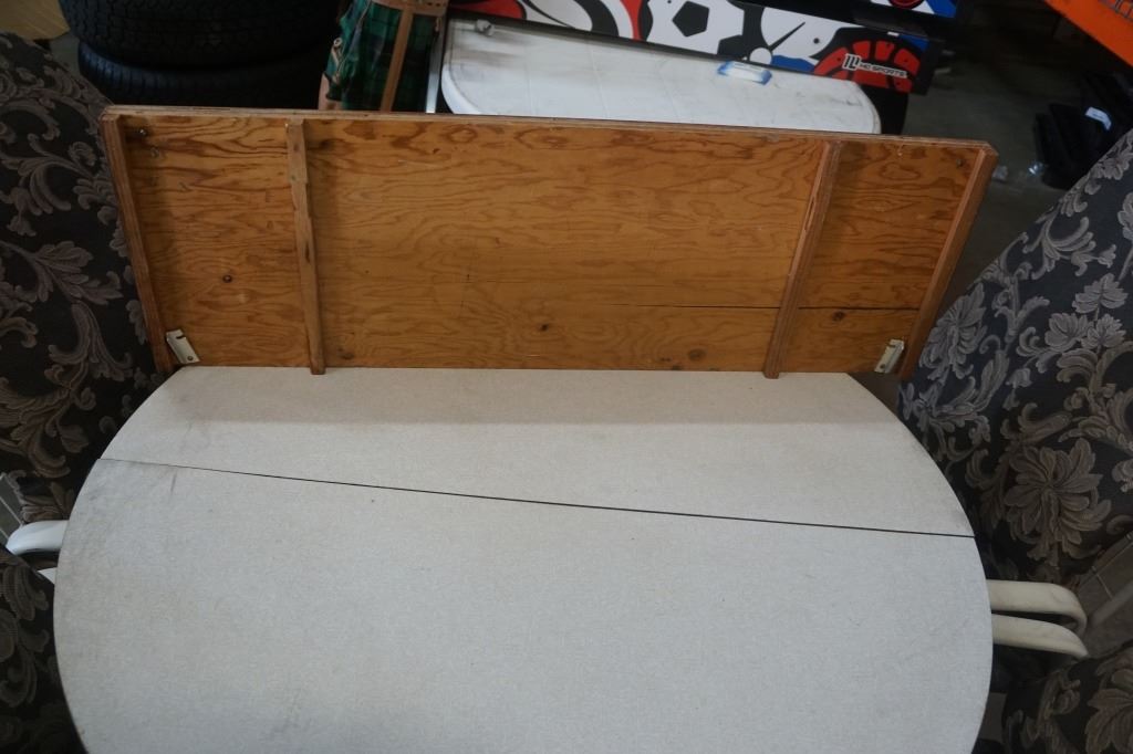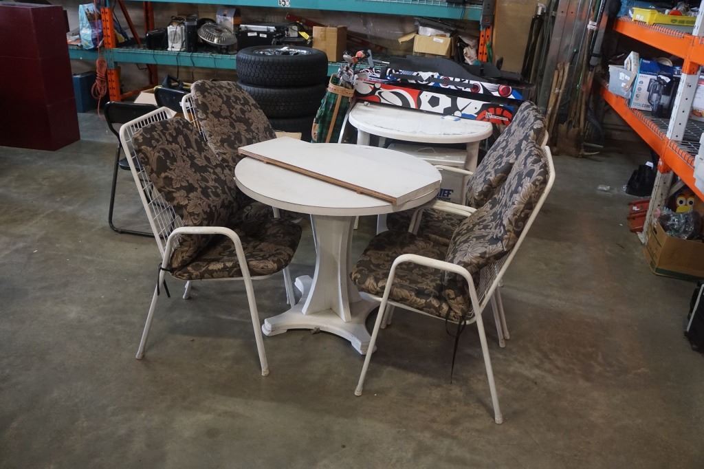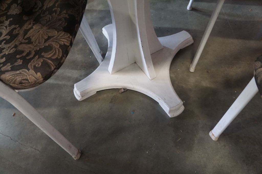 ROUND WHITE DINING TABLE WITH 4 METAL CHAIRS