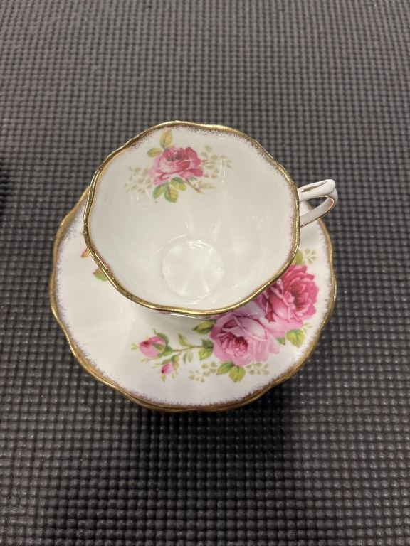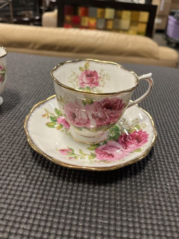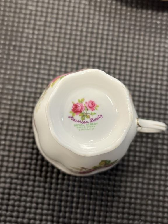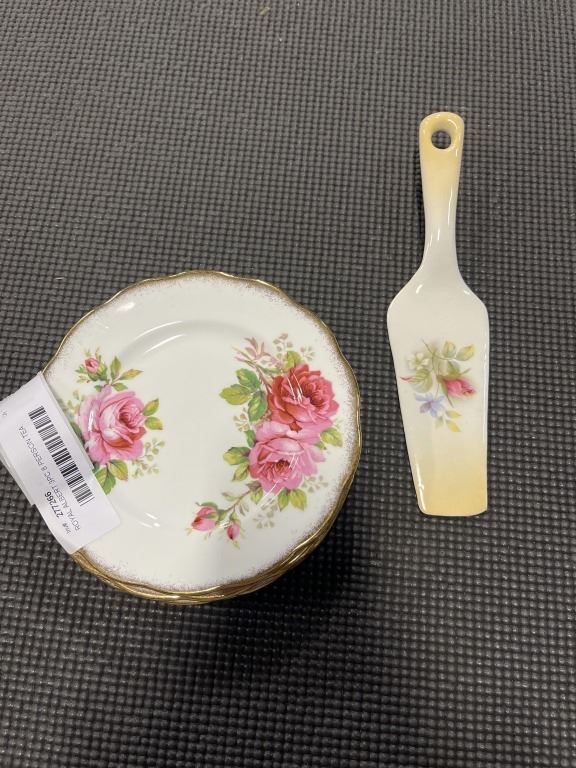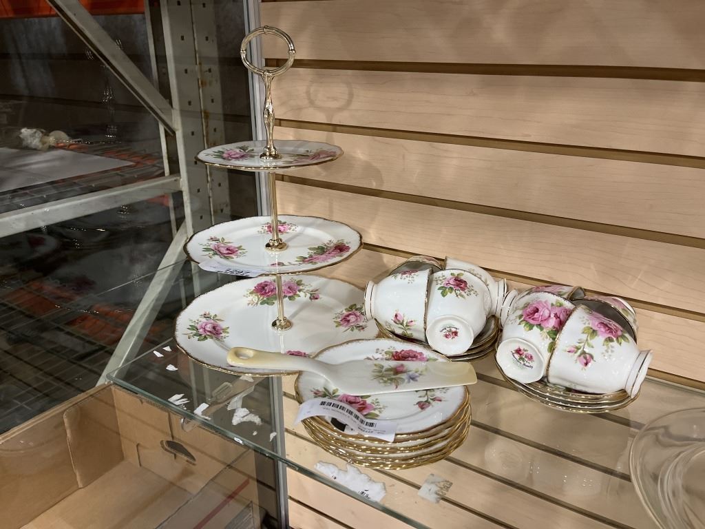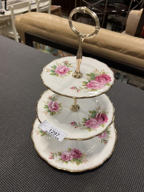 ROYAL ALBERT 3PC 8 PLACE TEA SETTING W/ 3 TIERED DESSERT TRAY