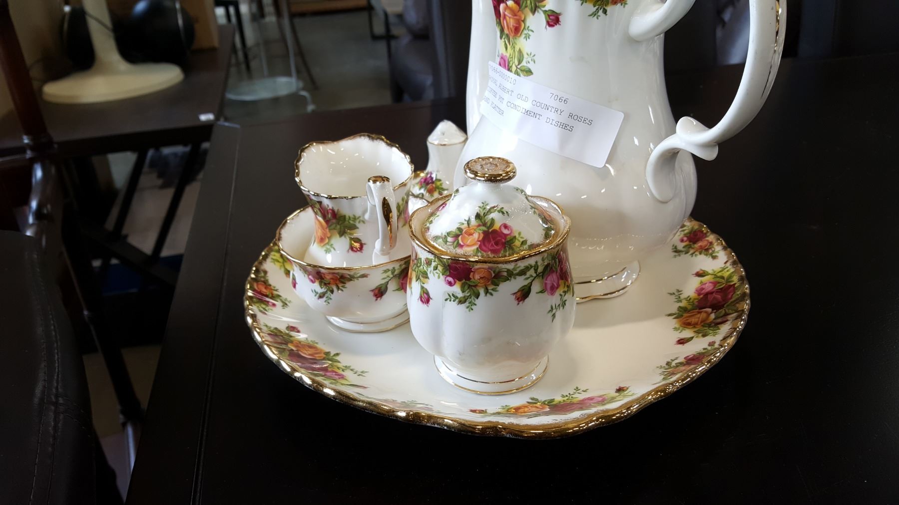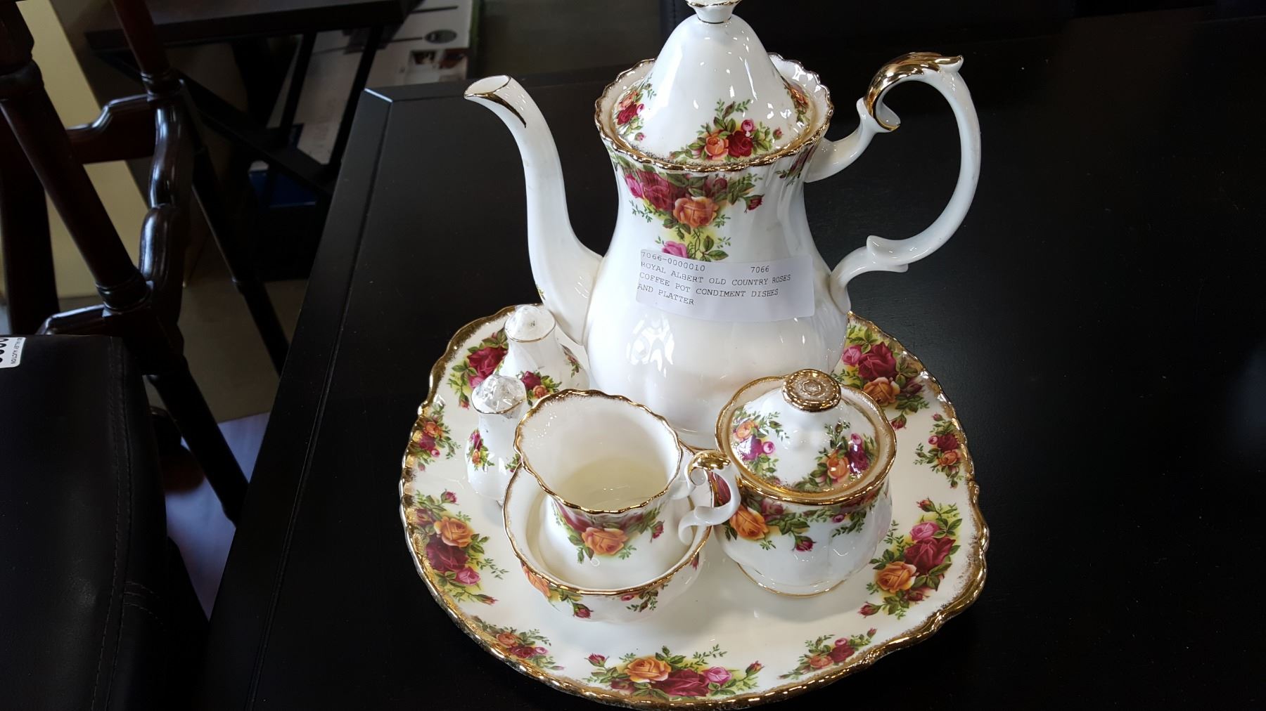 ROYAL ALBERT OLD COUNTRY ROSES COFFEE POT CONDIMENT DISHES AND PLATTER