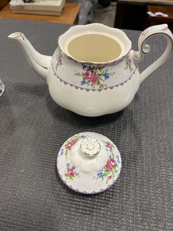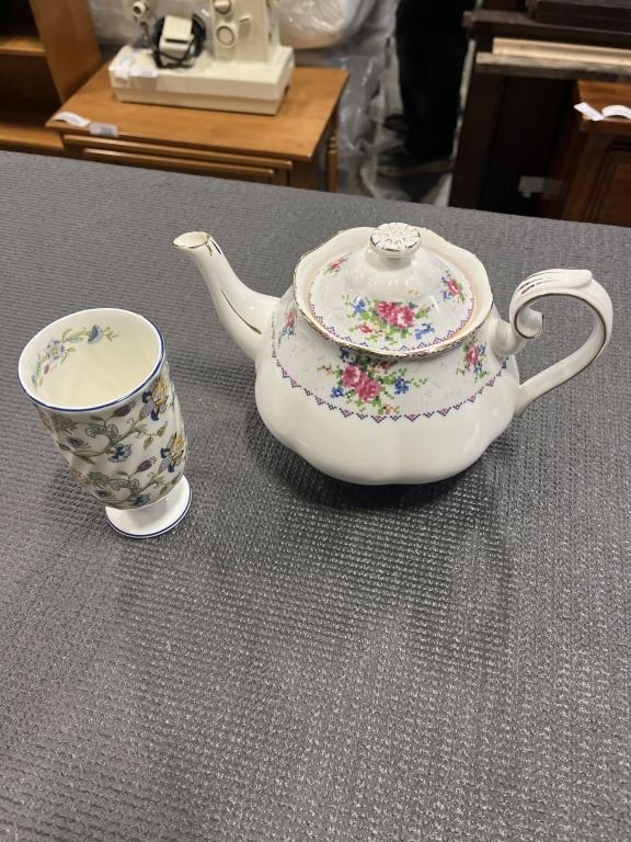 ROYAL ALBERT PETIT POINT TEAPOT AND MINTON VASE