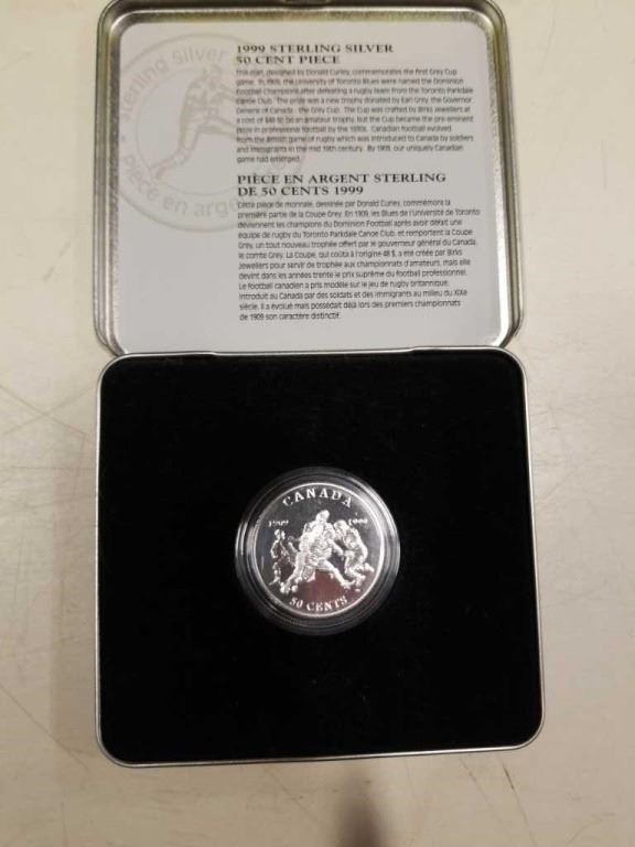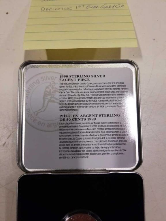 ROYAL CANADIAN MINT STERLING SILVER 50c PIECE DEPICTING FIRST GREY CUP