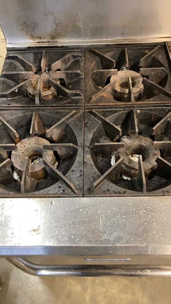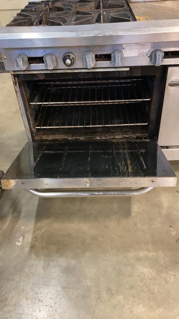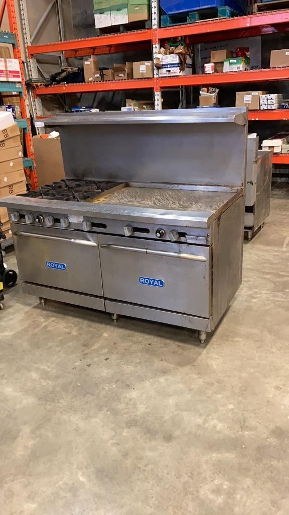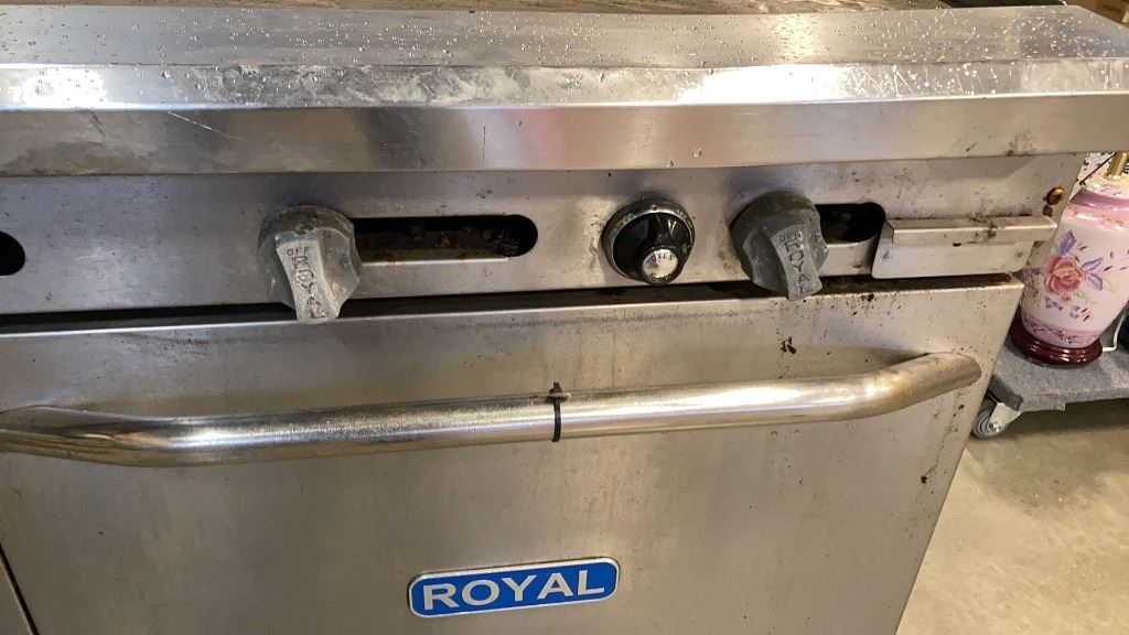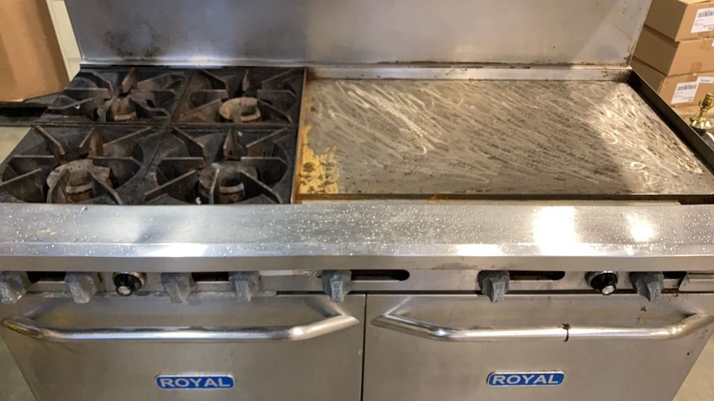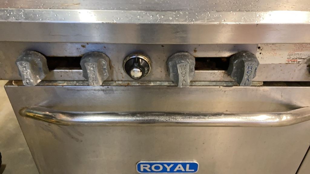 ROYAL COMMERCIAL COOKING 4 BURNER GAS RANGE, DOUBLE OVEN - WORKING