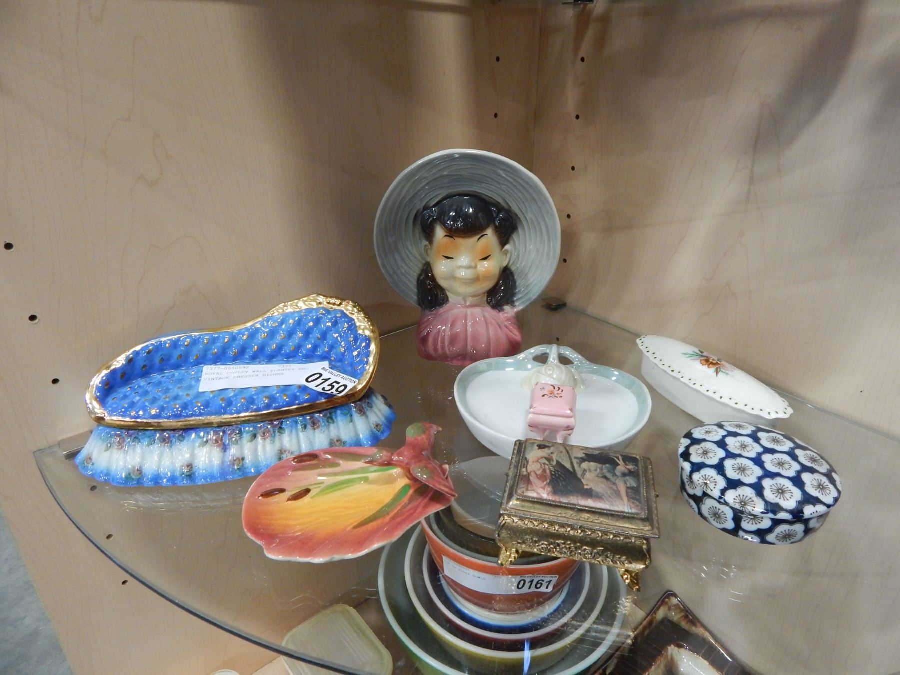 ROYAL COPLEY WALL PLANTER AND VINTAGE DRESSER DISHES
