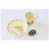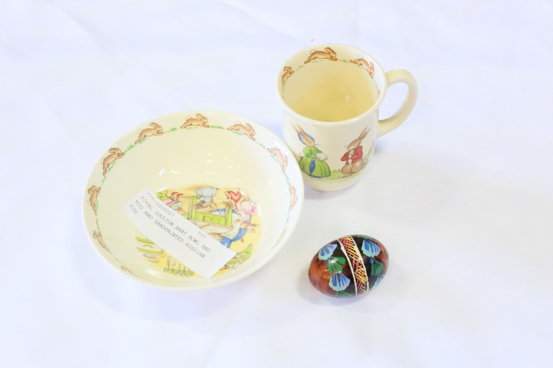 ROYAL DOULTON BABY BOWL AND MUG AND HANDPAINTED RUSSIAN EGG