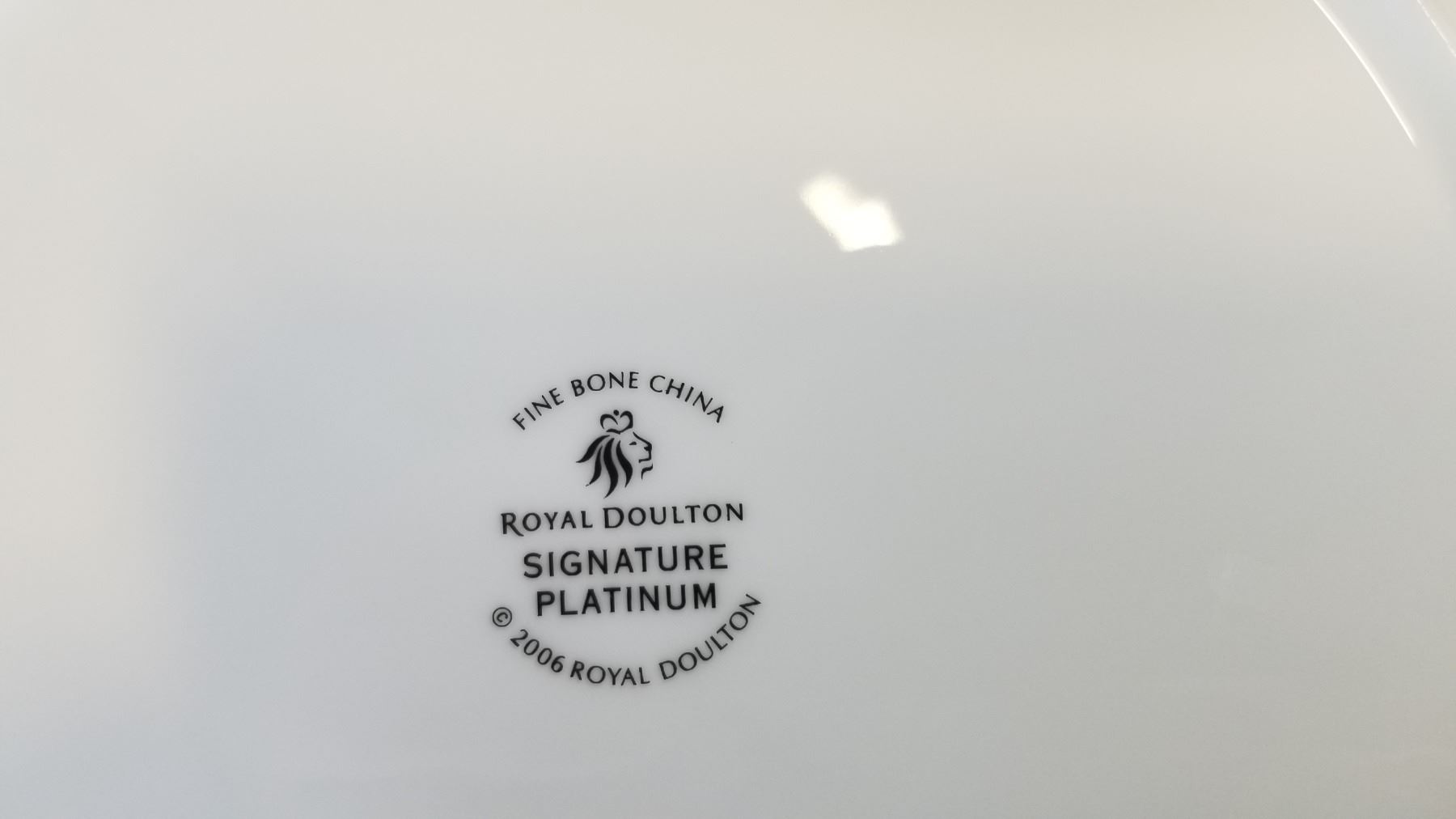 ROYAL DOULTON SIGNATURE PLATINUM 8 CUPS AND SAUCERS AND 8 PLACE SETTING PLATES, 8 ROYAL DOULTON SIMP
