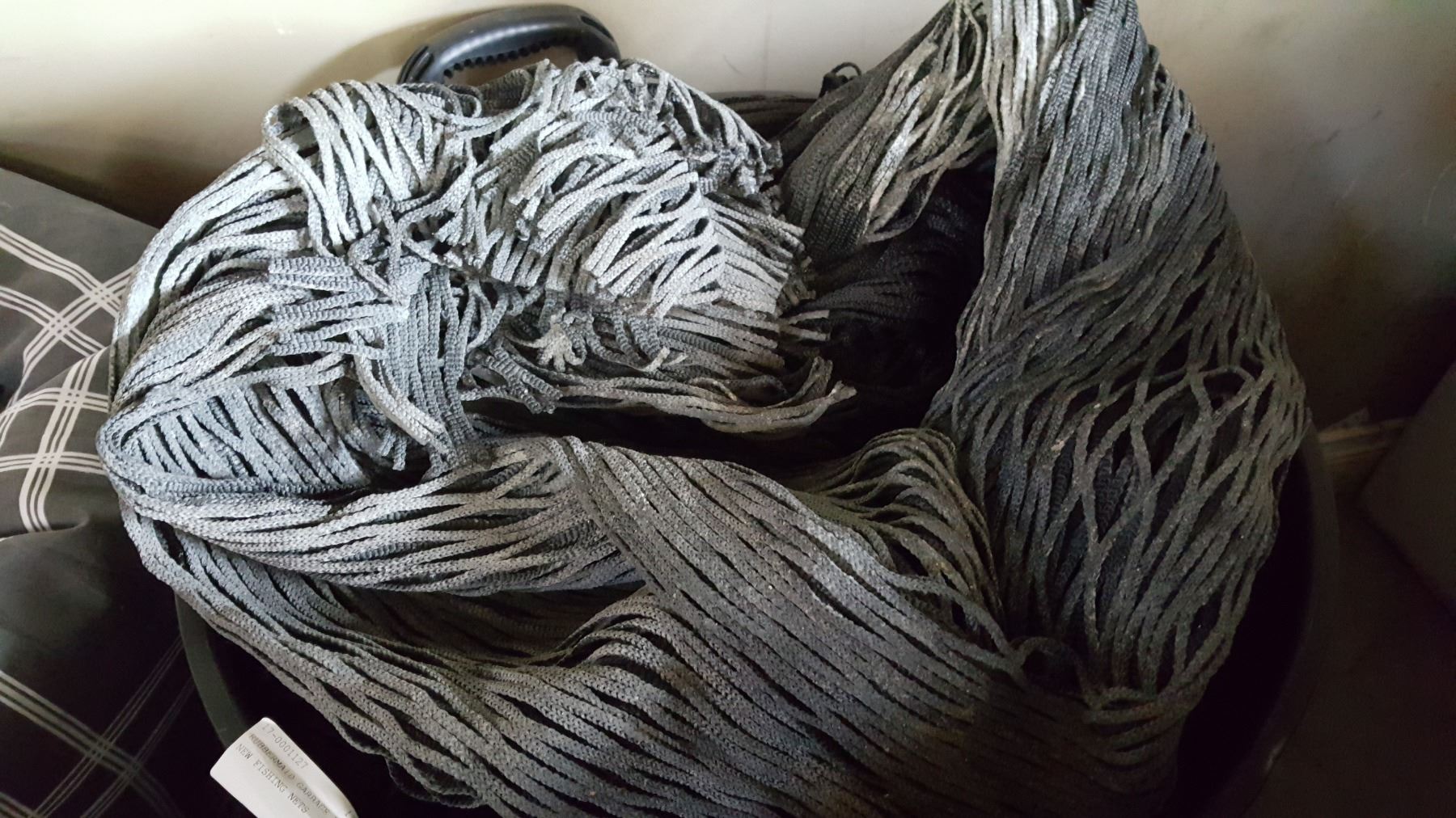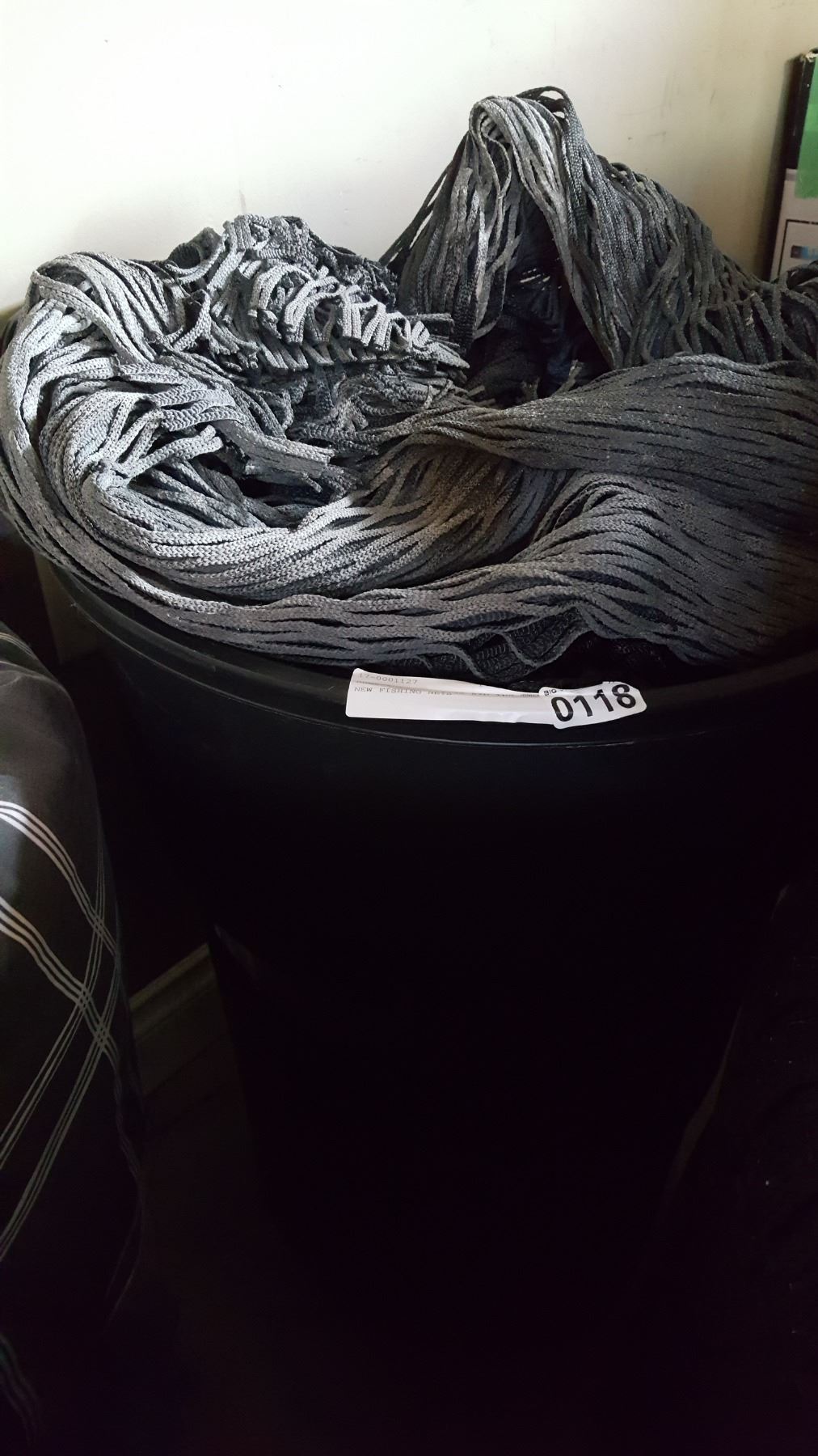 RUBBERMAID GARBAGE BIN AND TWO NEW FISHING NETS