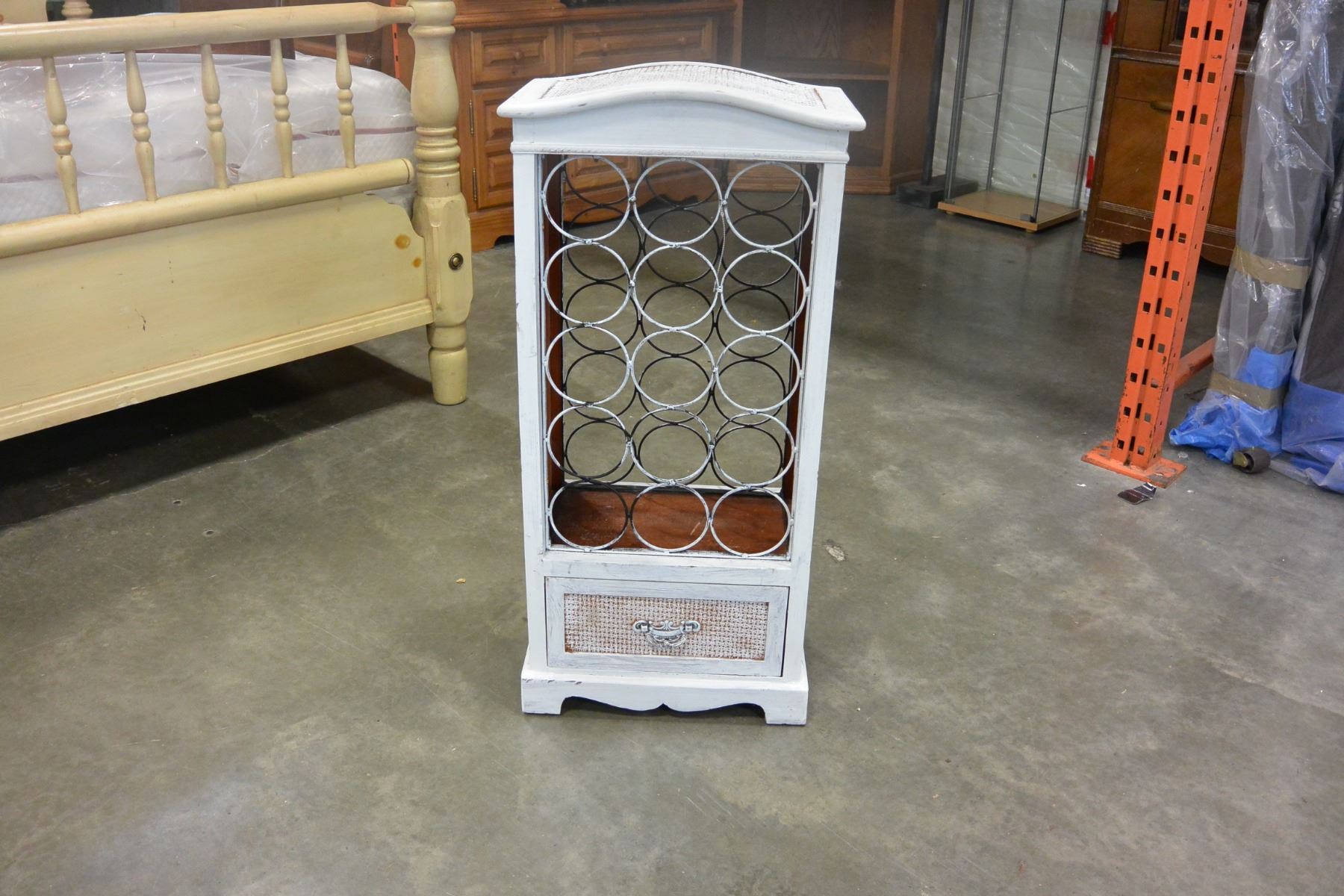 RUSTIC WHITE WINE RACK W/ DRAWER