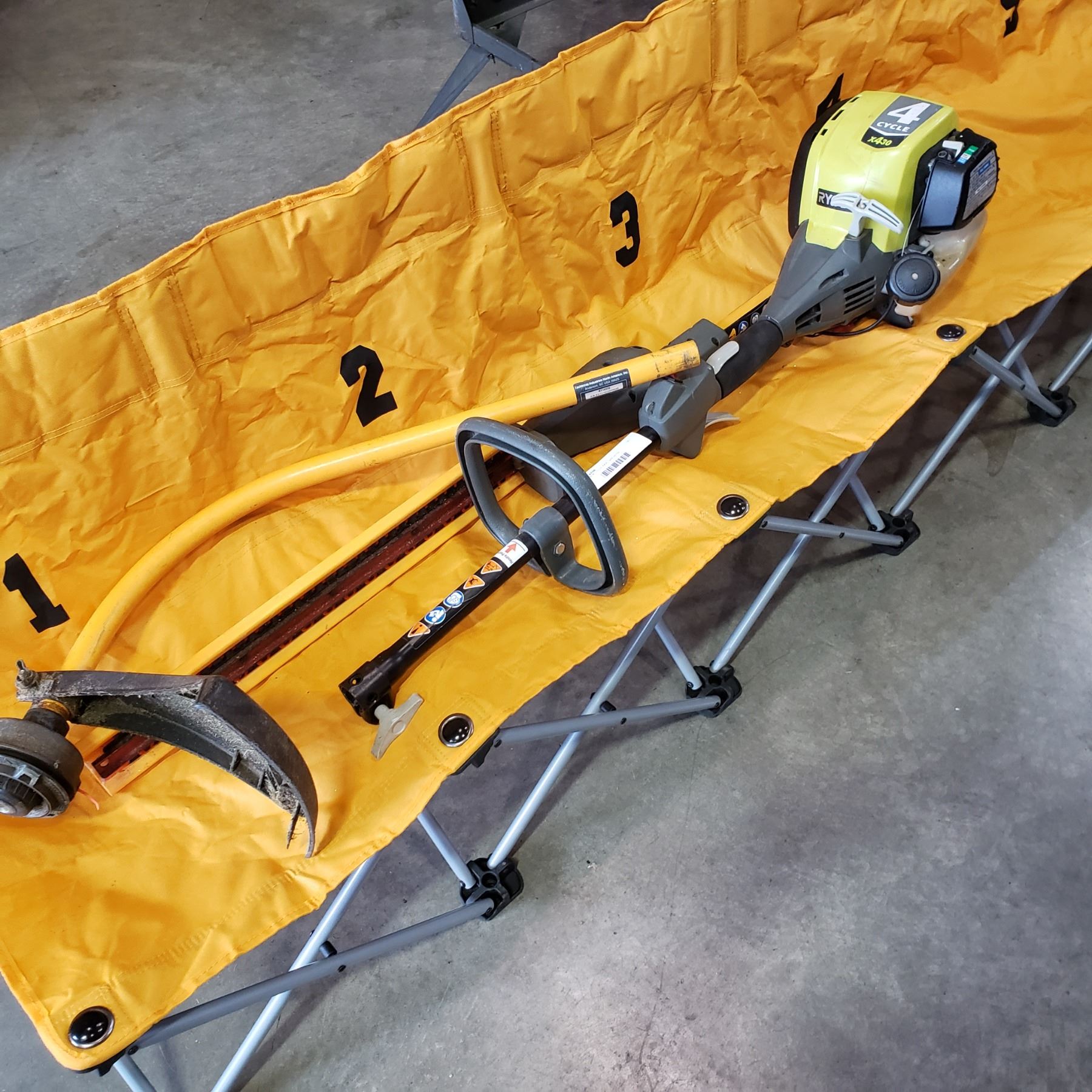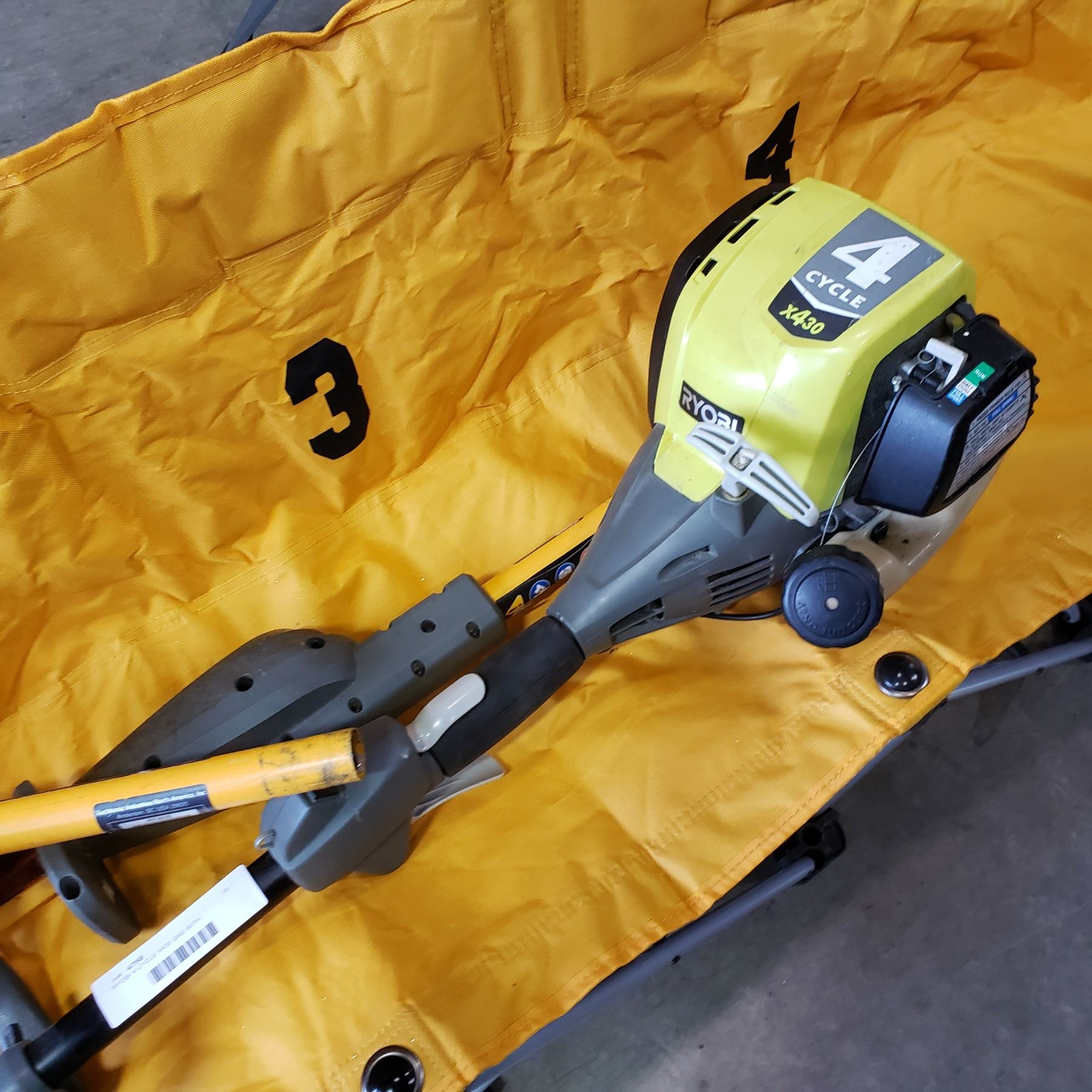 RYOBI 4 CYCLE X430 GAS WITH WEEDEATER AND HEDGE TRIMMER ATTACHMENTS