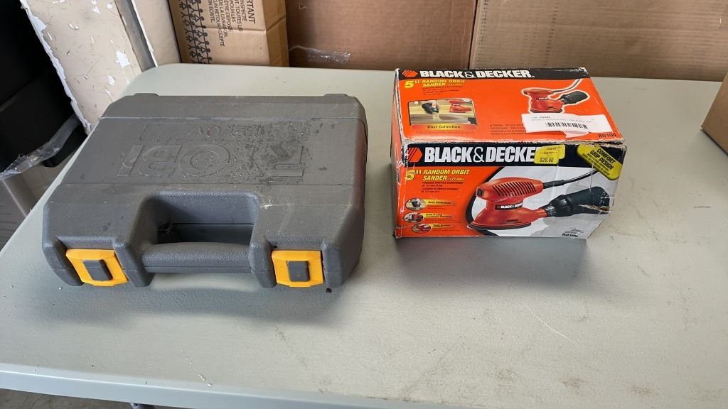 RYOBI CORDLESS DRILL AND BLACK AND DECKER 5 INCH RANDOM ORBIT SANDER