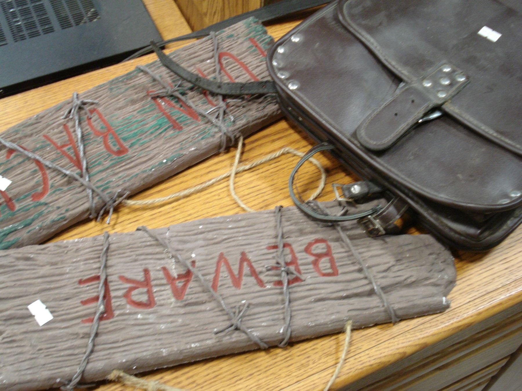SADDLE BAG AND TWO PRINTS AND TWO NOVELTY SIGNS