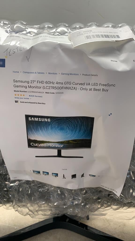 SAMSUNG 27 INCH FHD 60HZ 4MS GTG CURVED VA LED FREESYNC GAMING MONITOR MODEL LC27R500FHNXZA - TESTED WORKING WITH POWER CORD