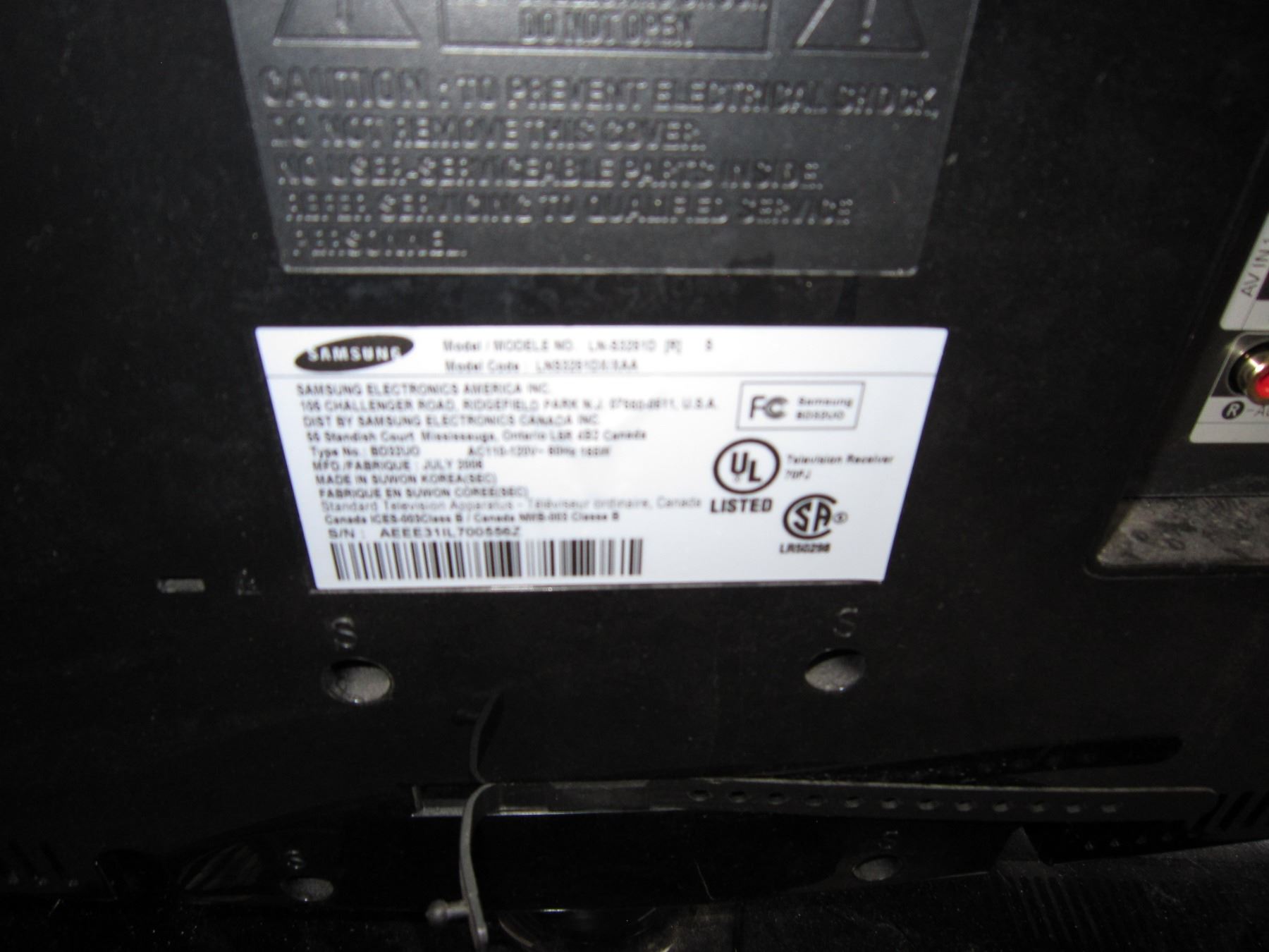 SAMSUNG 32 INCH TV NO POWER CORD