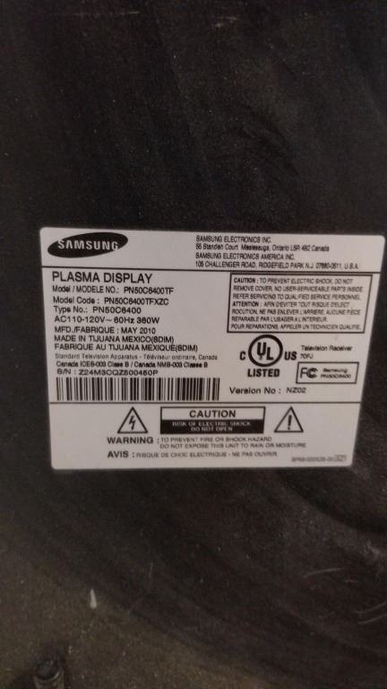 SAMSUNG 50 INCH PLASMA DISPLAY TV - WORKING, HAS LINES