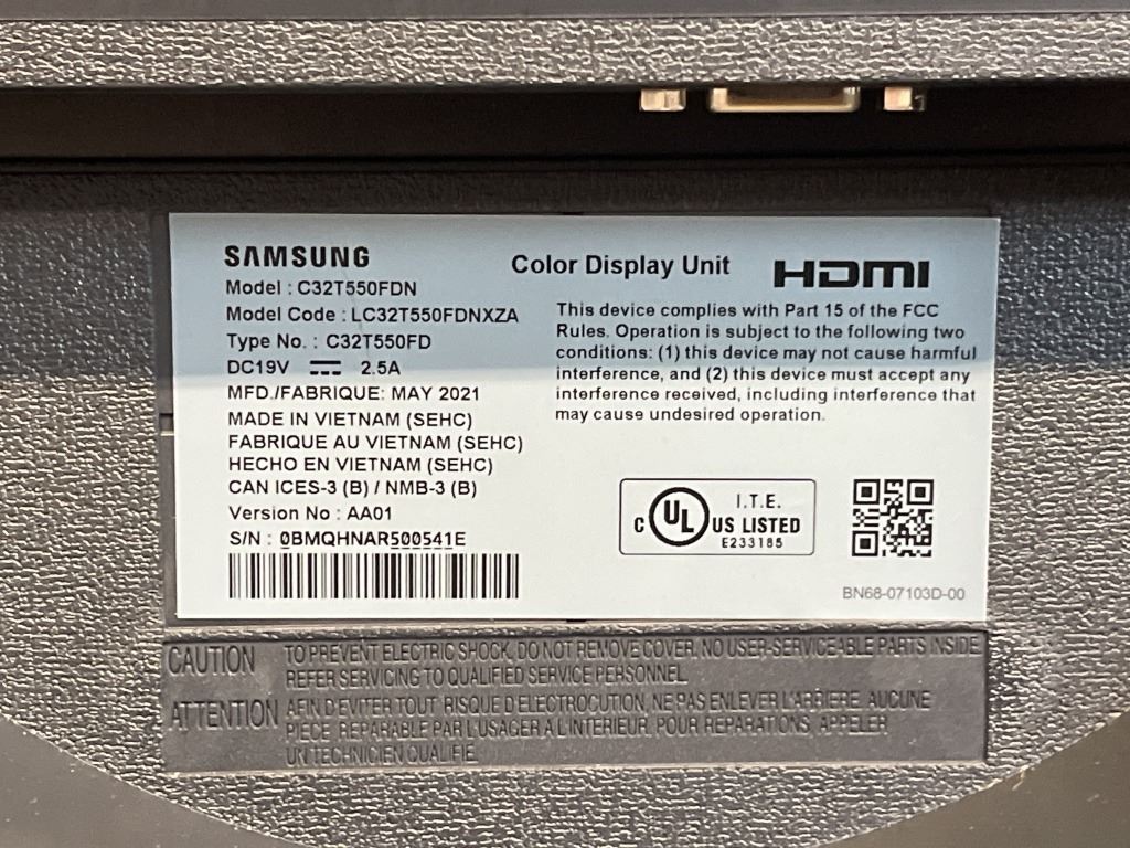 SAMSUNG C32T550FDN 32-IN CURVED MONITOR - TESTED WORKING, W/ POWER SUPPLY