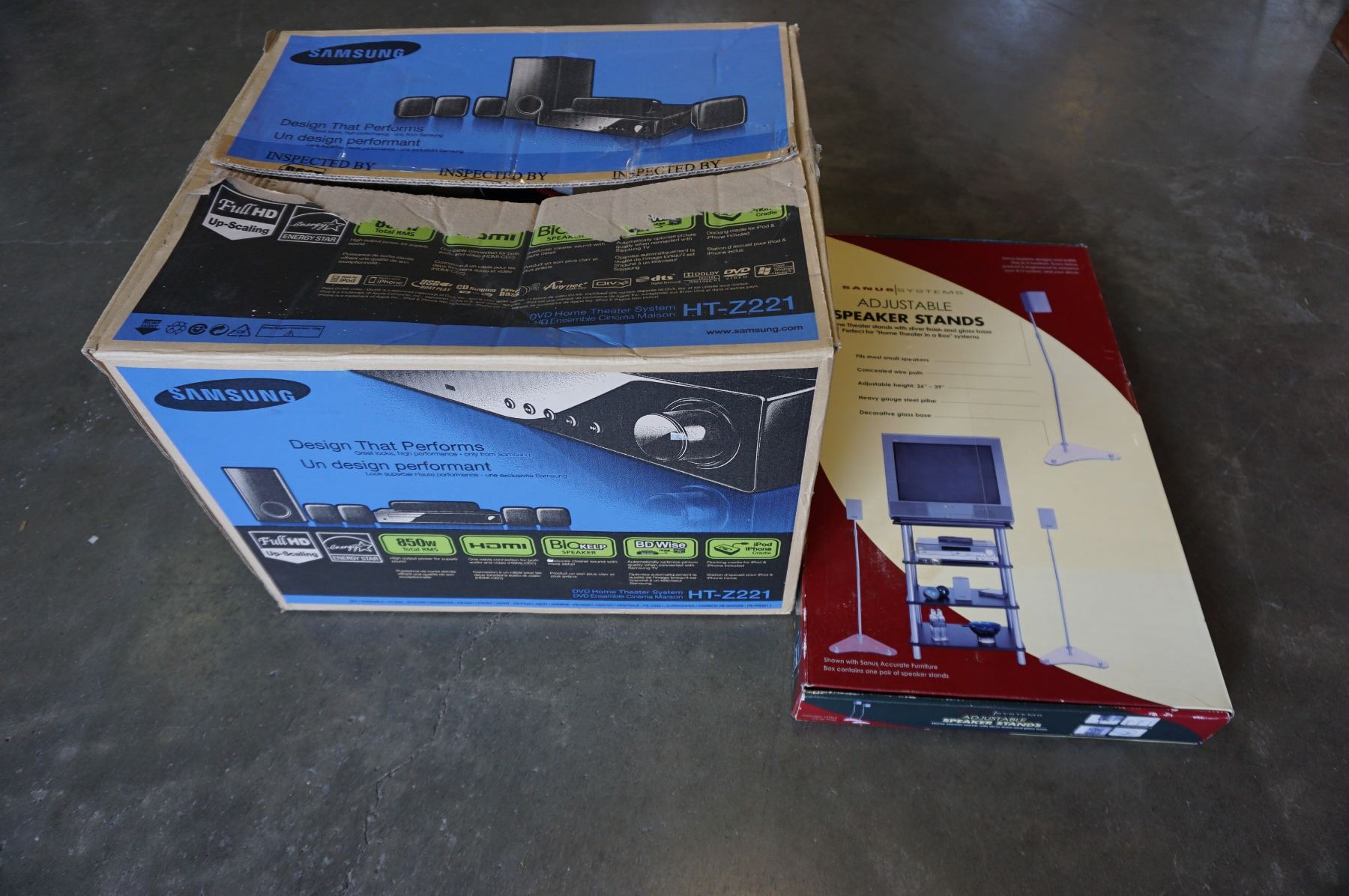 SAMSUNG DVD HOME THEATER SYSTEM HT-Z221 AND SPEAKER STANDS