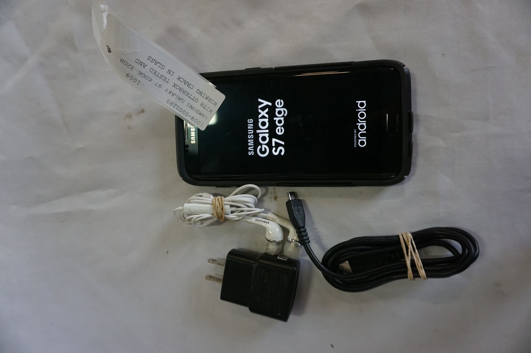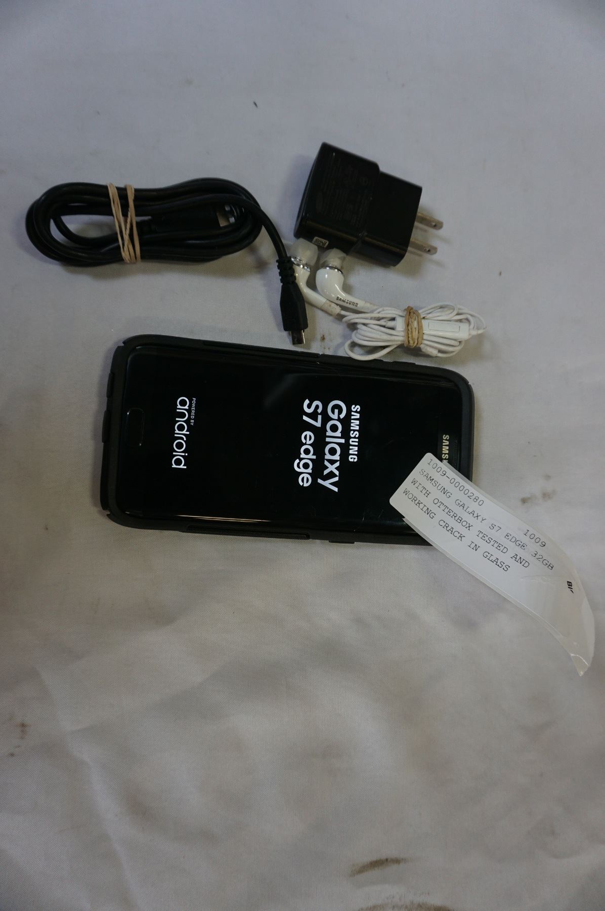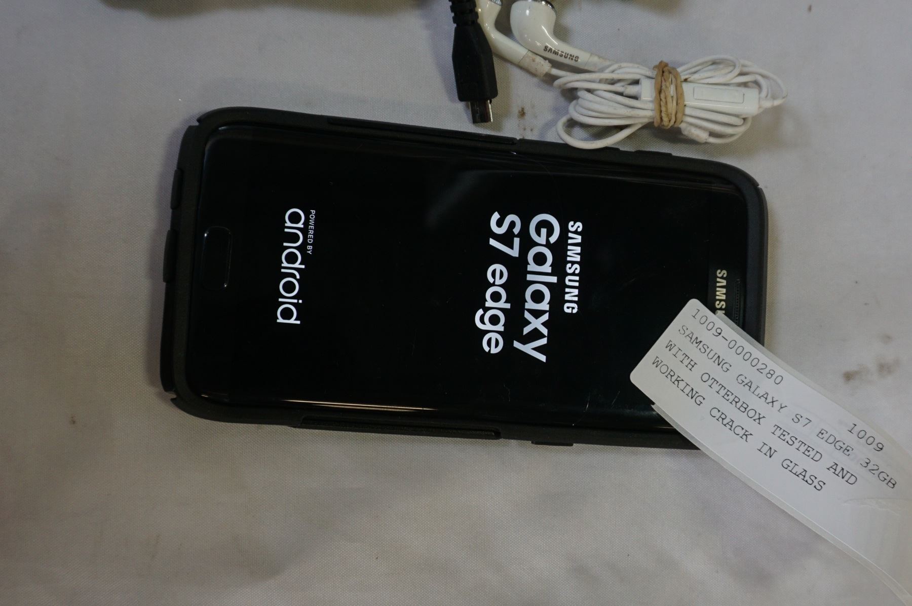 SAMSUNG GALAXY S7 EDGE 32GB WITH OTTERBOX TESTED AND WORKING CRACK IN GLASS BLACKLISTED USE FOR WIFI