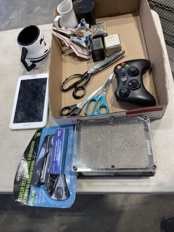 SAMSUNG TABLET, X BOX CONTROLLER AND ASSORTED HOUSEHOLD AND OFFICE SUPPLY