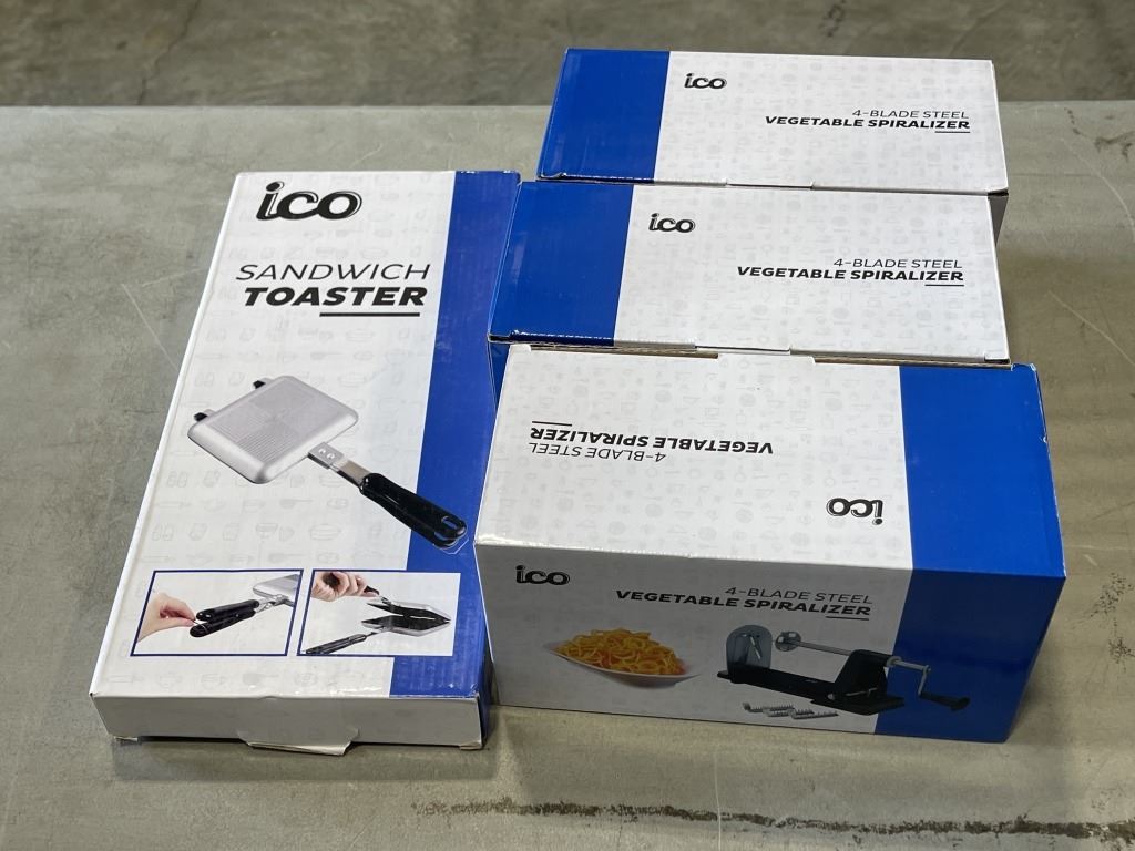 SANDWICH TOASTER AND 3 4-BLADE VEGETABLE SPIRALIZERS