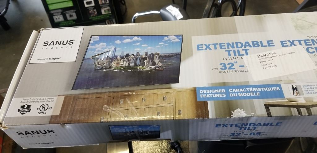 SANUS ACCENTS 32-85" EXTENDABLE TILTING TV WALL MOUNT, RETAIL $119