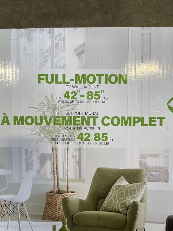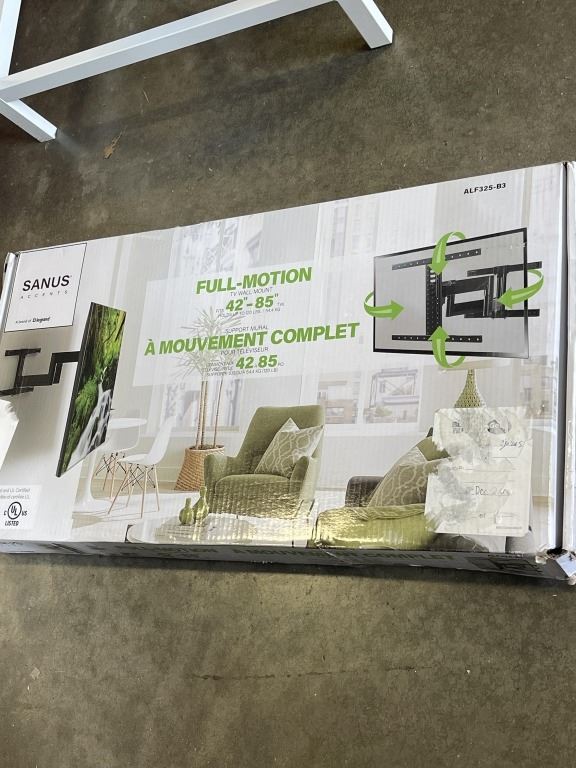 SANUS ACCENTS 42-85" FULL MOTION TV WALL MOUNT, RETAIL $249
