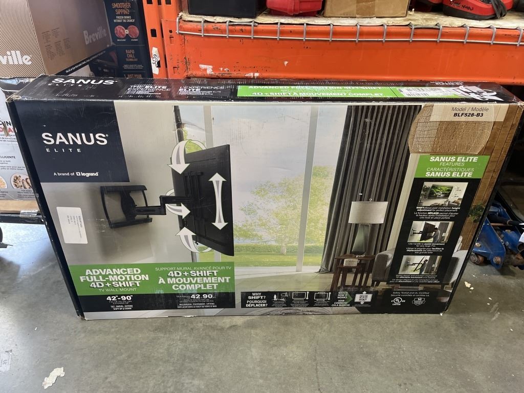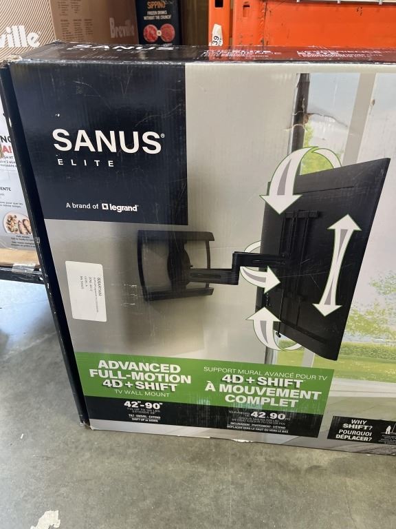 SANUS ELITE 42-90" ADVANCED FULL-MOTION 4D + SHIFT WALL MOUNT, RETAIL $439