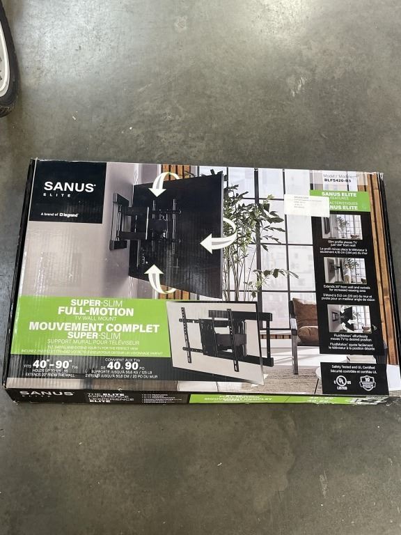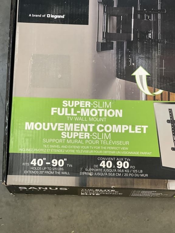 SANUS SUPER SLIM 40-90" FULL MOTION TV WALL MOUNT, RETAIL $369