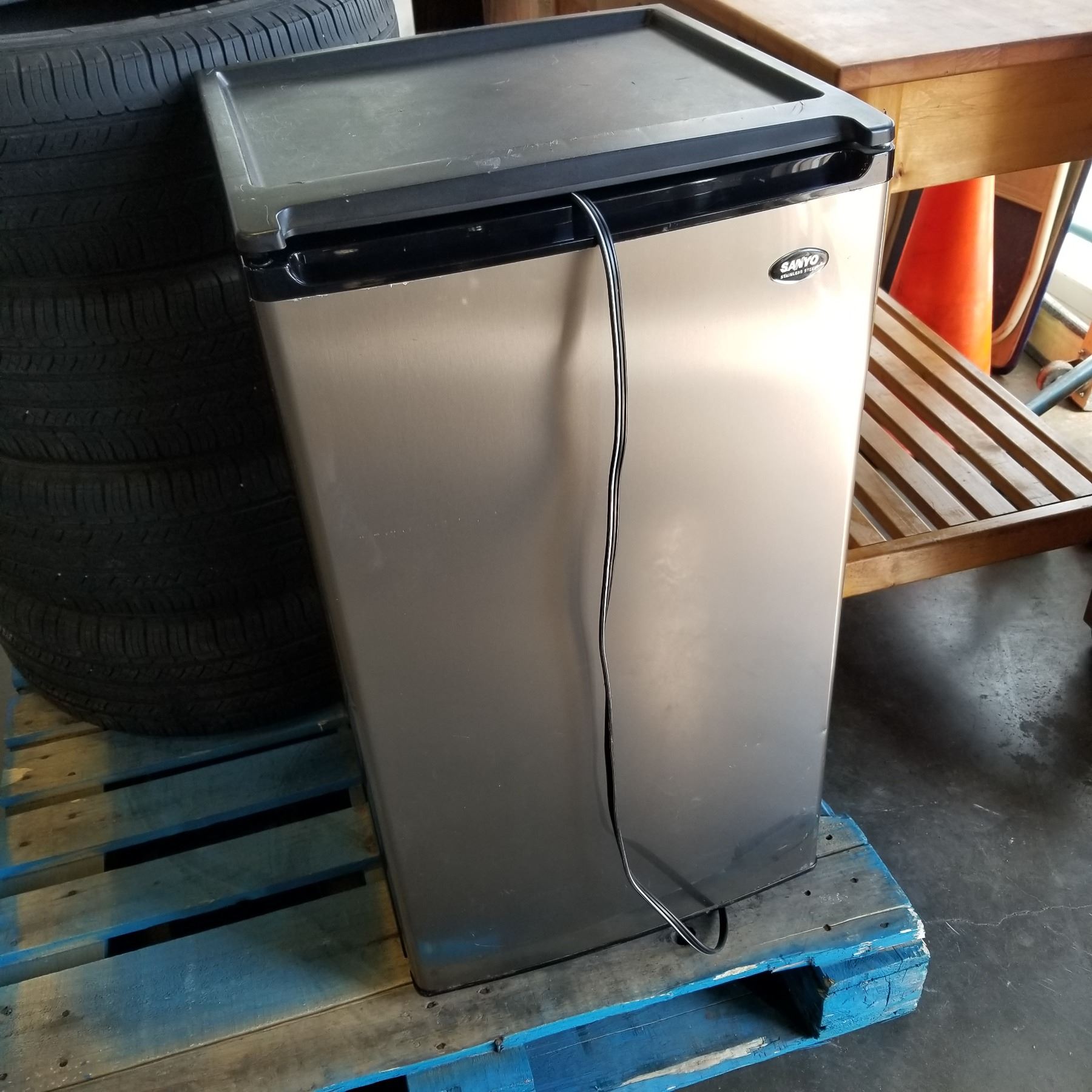 SANYO STAINLESS BAR FRIDGE AS IS