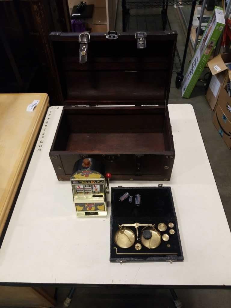 SCALE, MINI SLOT MACHINE AND SMALL TURNK