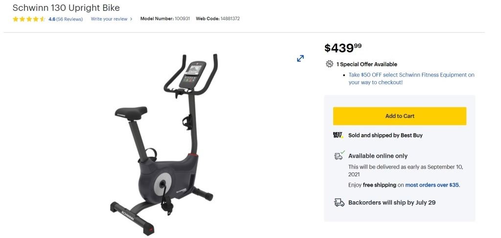 NEW SCHWINN 130 UPRIGHT EXERCISE BIKE RETAIL $439.99