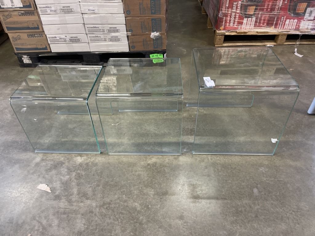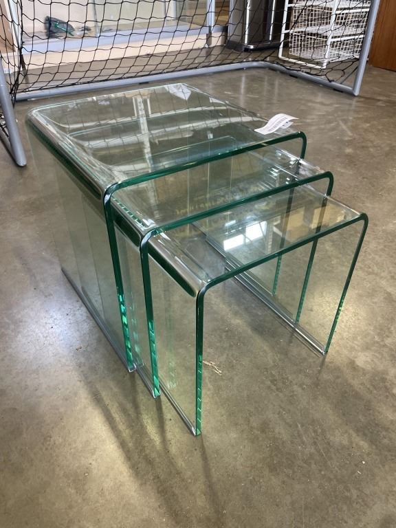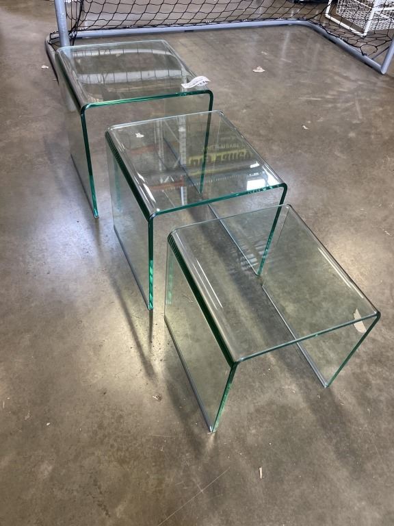 SET OF 3 BEND GLASS NESTING TABLES