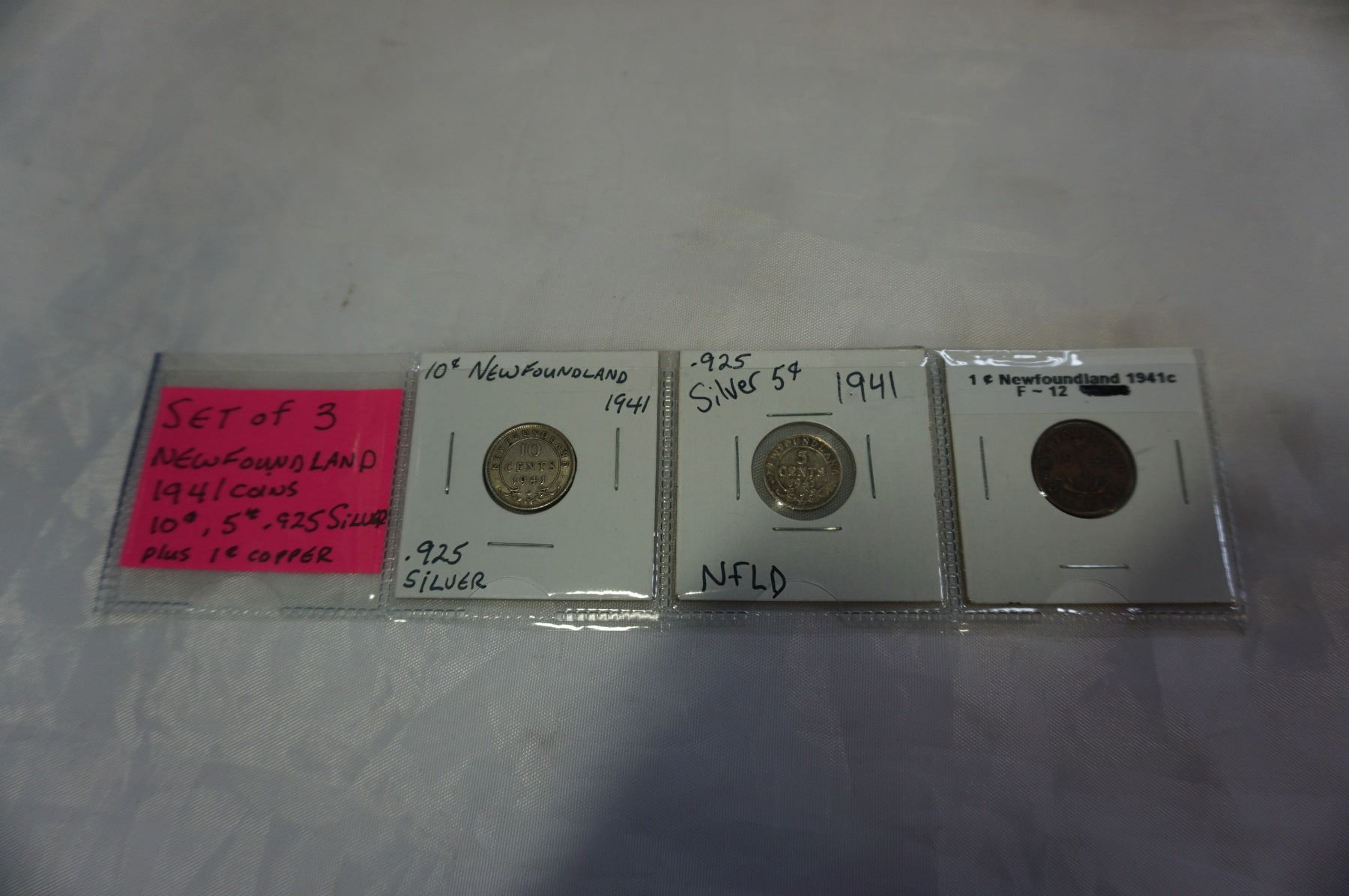 SET OF 3 NEWFOUNDLAND 1941 COINS 1c COPPER 5 AND 10c ,925 SILVER COINS
