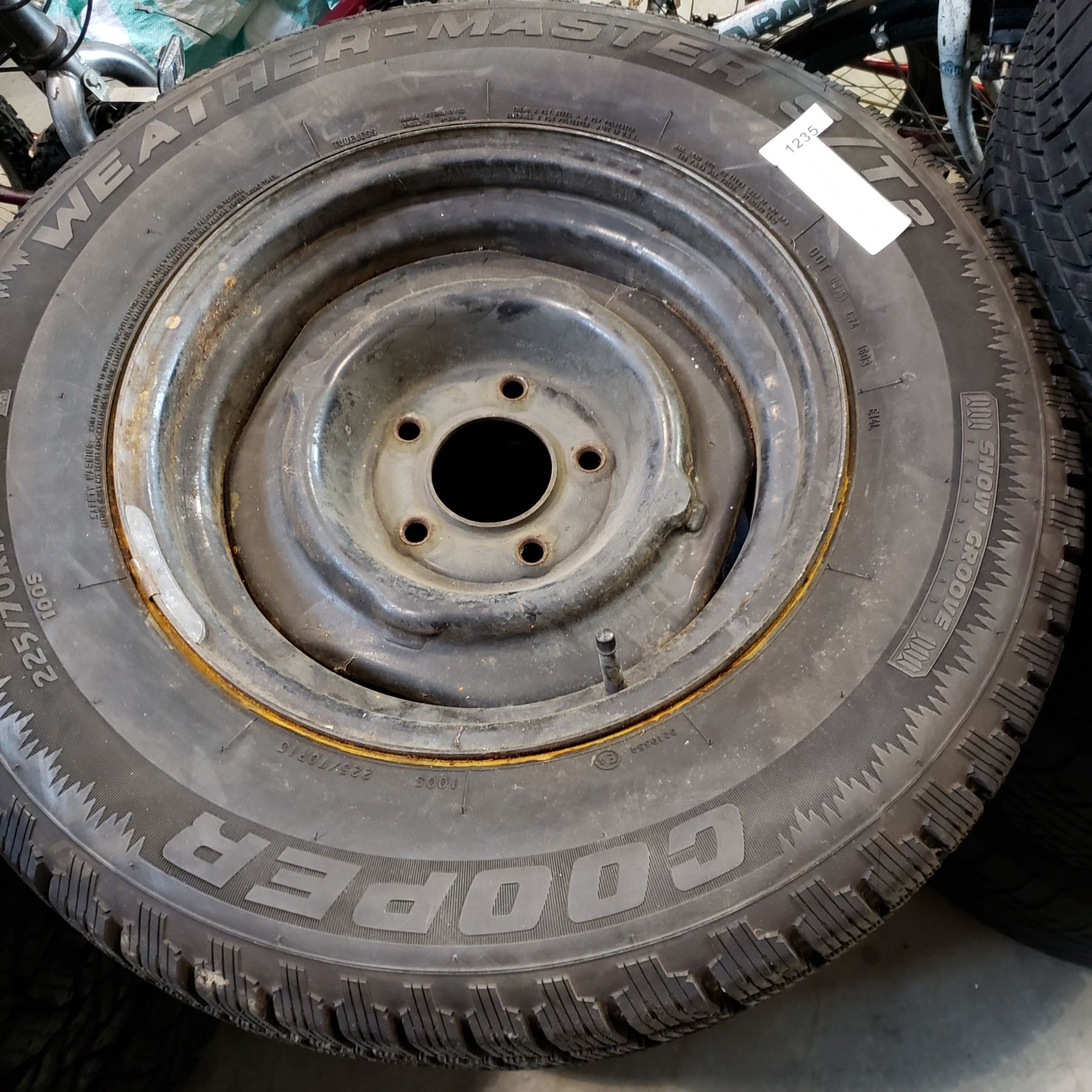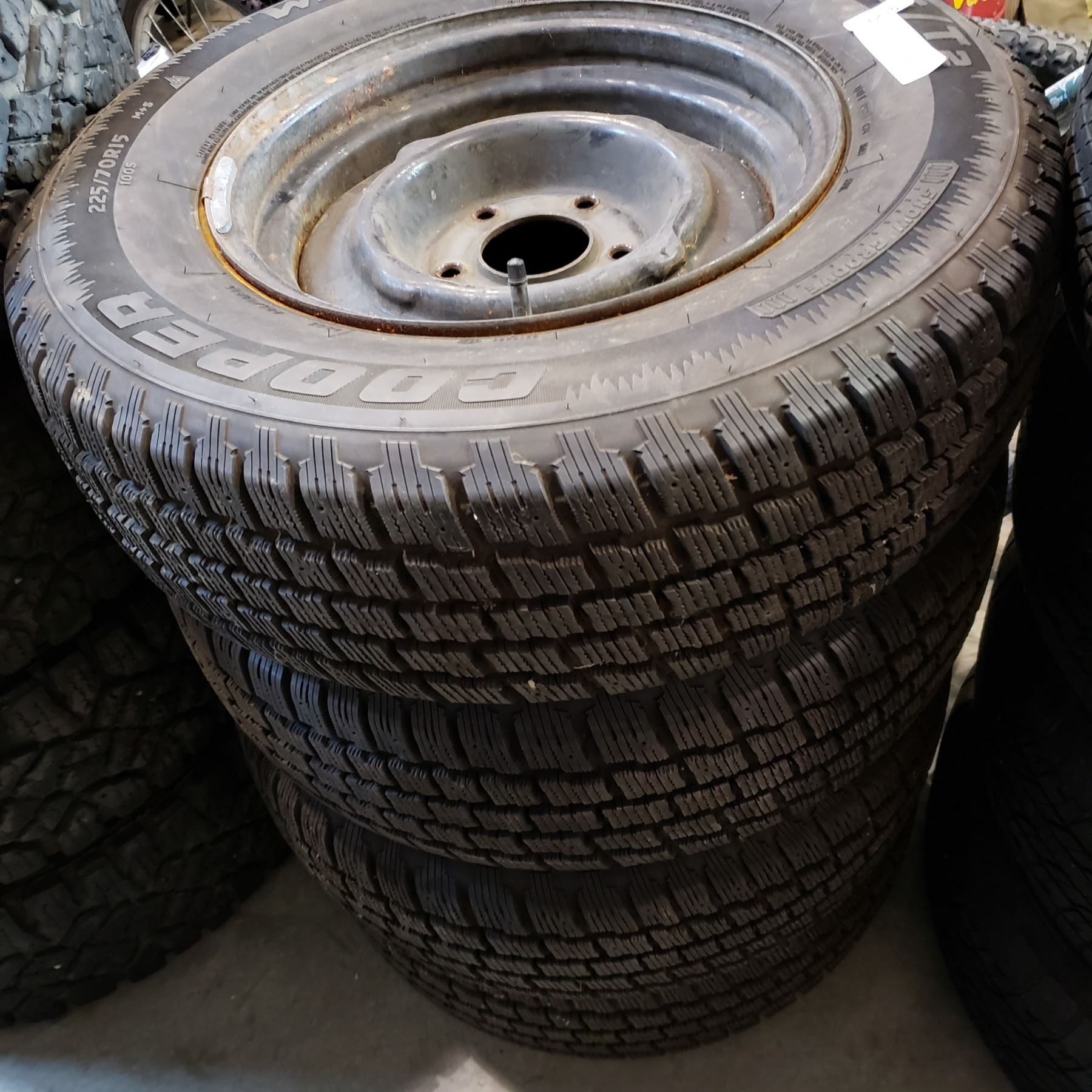 SET OF 4 225/70 R15 COOPER WEATHER MASTER S/T 2 TIRES ON RIMS
