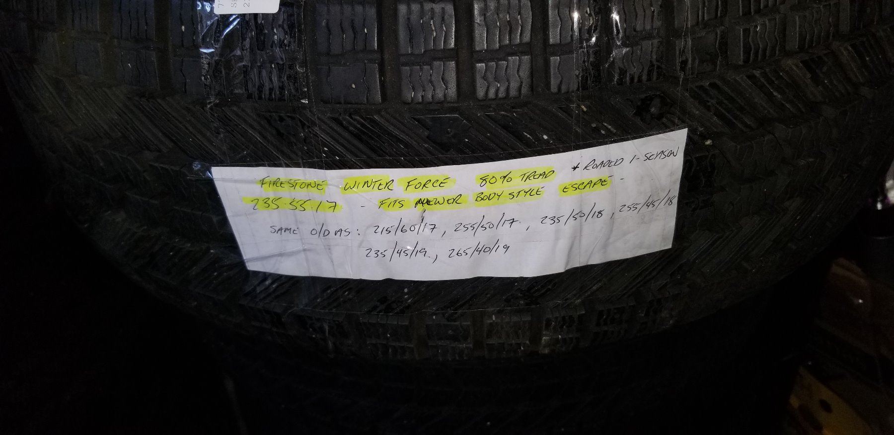 SET OF 4 FIRESTONE WINTERFORCE 235 55 AR 17 - 80% TREAD LEFT
