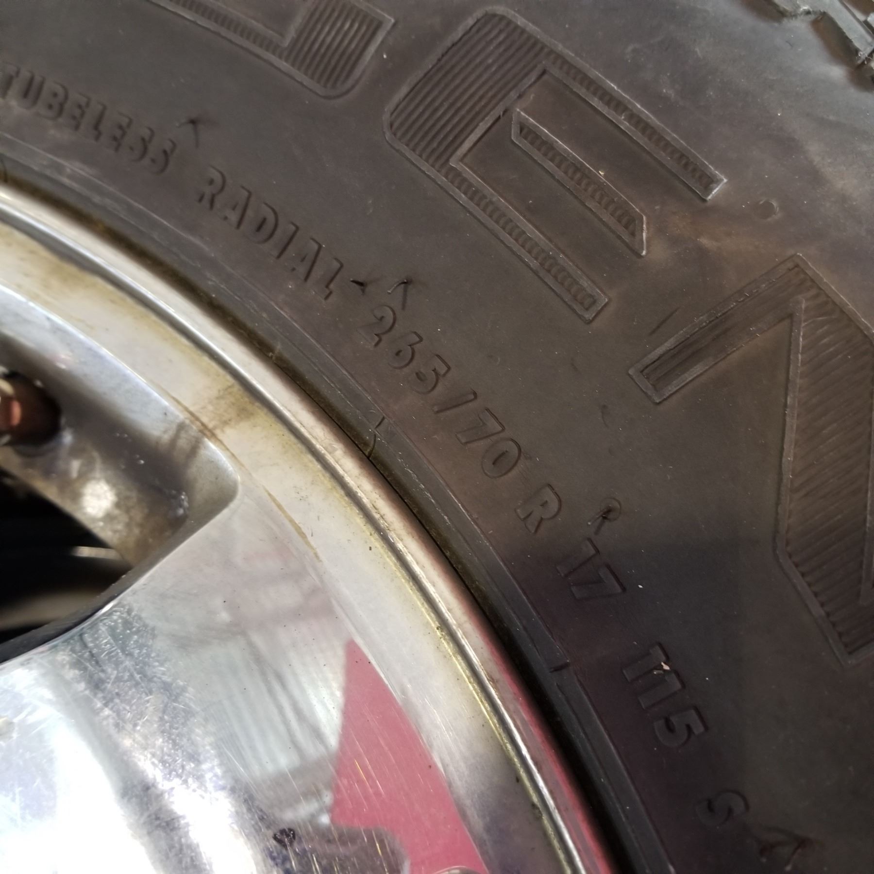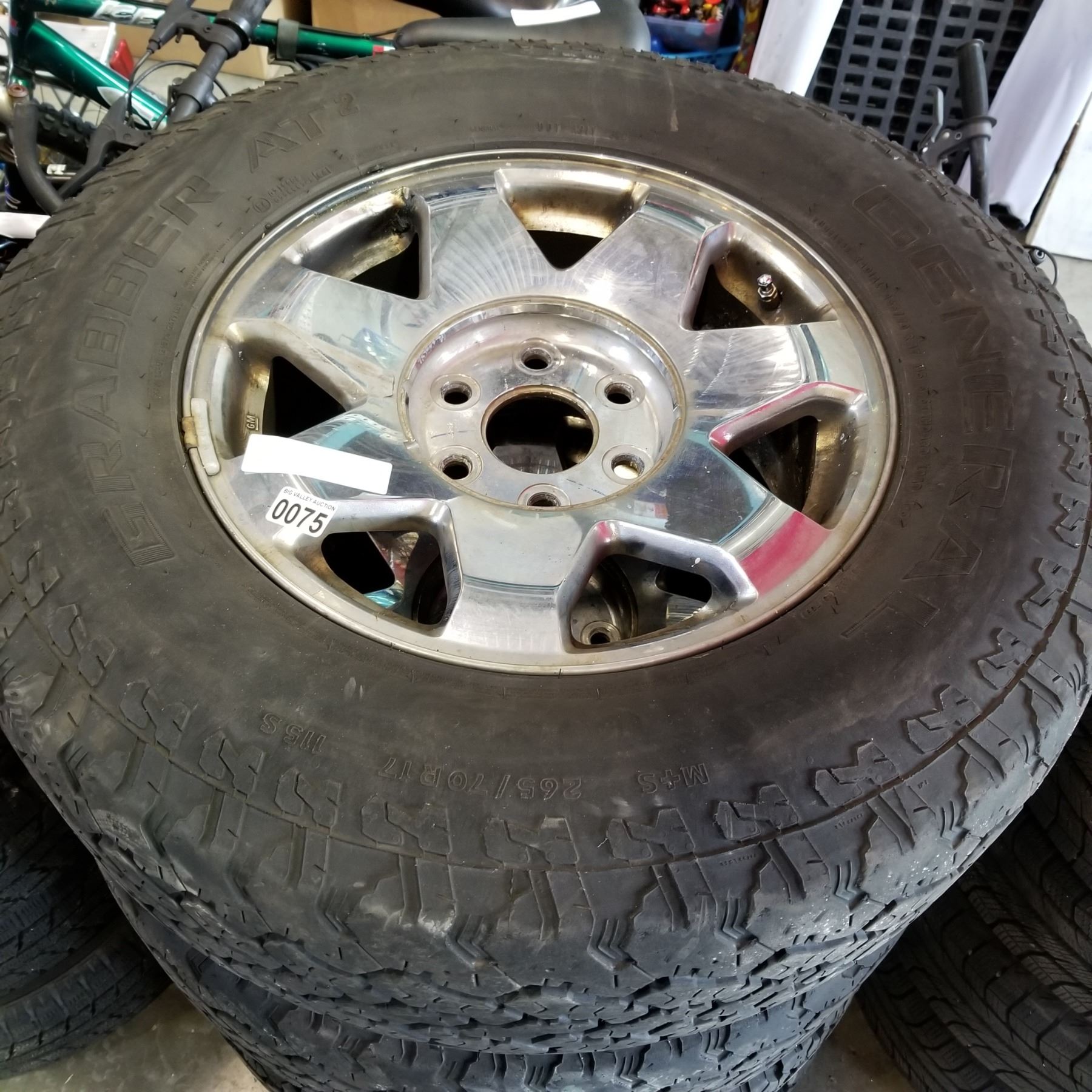 SET OF 4 GENERAL GRABBER AT2 265/70 R17 TIRES ON 6 BOLT RIMS